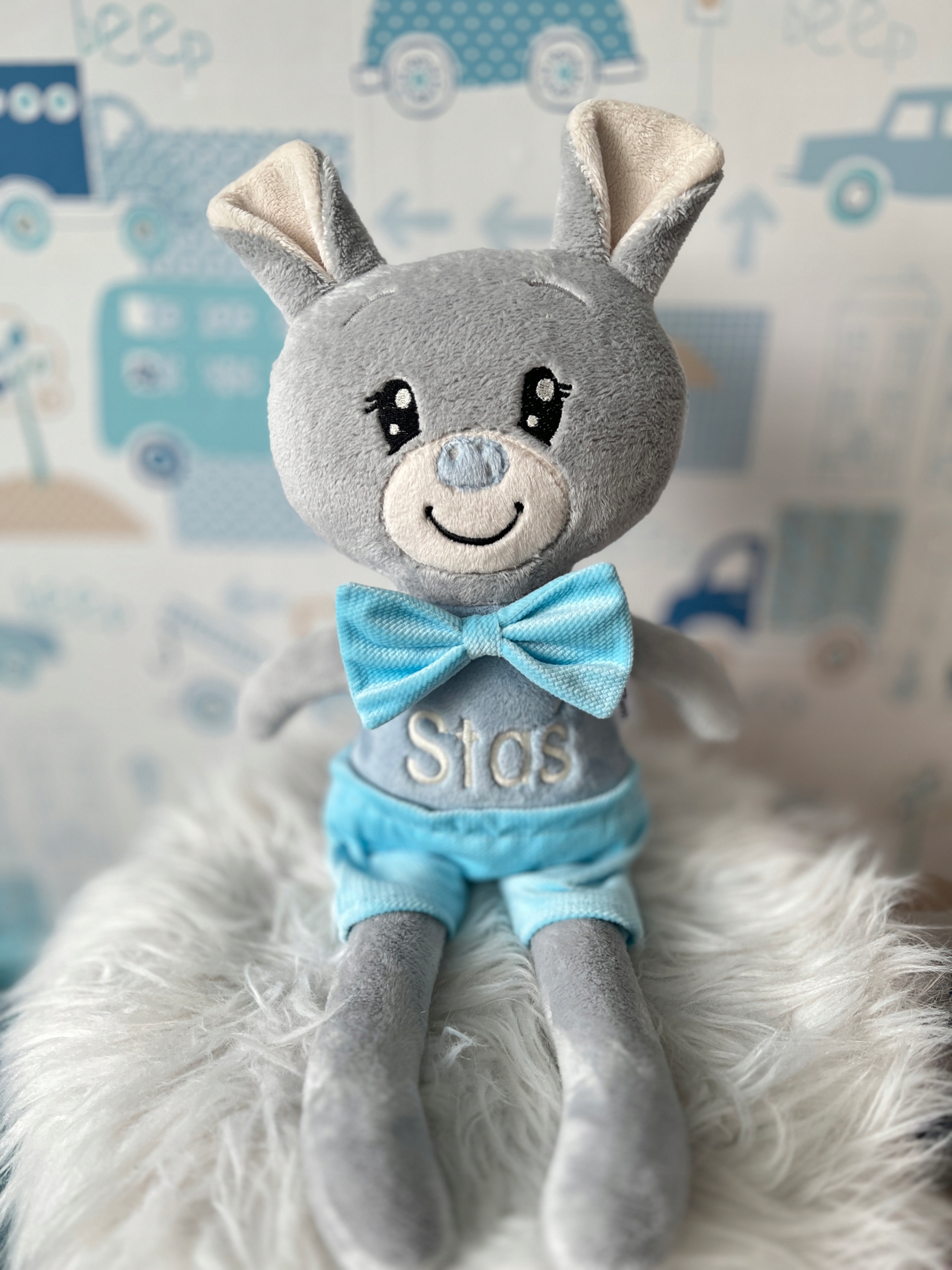 Ми запрошуємо вас придбати персонального плюшевого ведмедика з оксамитовою краваткою-метеликом і шортами.
