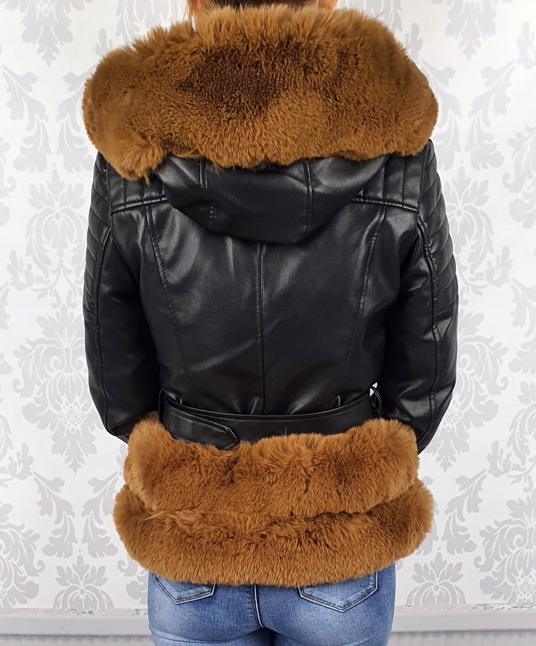 Красива тепла куртка, оброблена штучним коричневим хутром, модель довжиною до стегна. Виготовлена з м'якої екошкіри ідеально імітує натуральну шкіру напівматова (не блискуча і не блідо-матова). М'який матеріал (не жорсткий і не спінений). Застібається на сріблясту блискавку, додатковий пояс на талії. З боків дві кишені, куртка підбита чорним хутром. Його можна використовувати в будь-якому стилі, як з класичними джинсами і білою футболкою для повсякденних виходів, так і з жіночними сукнями, додаючи їм роковий характер. Це однозначно must-have у кожному гардеробі!