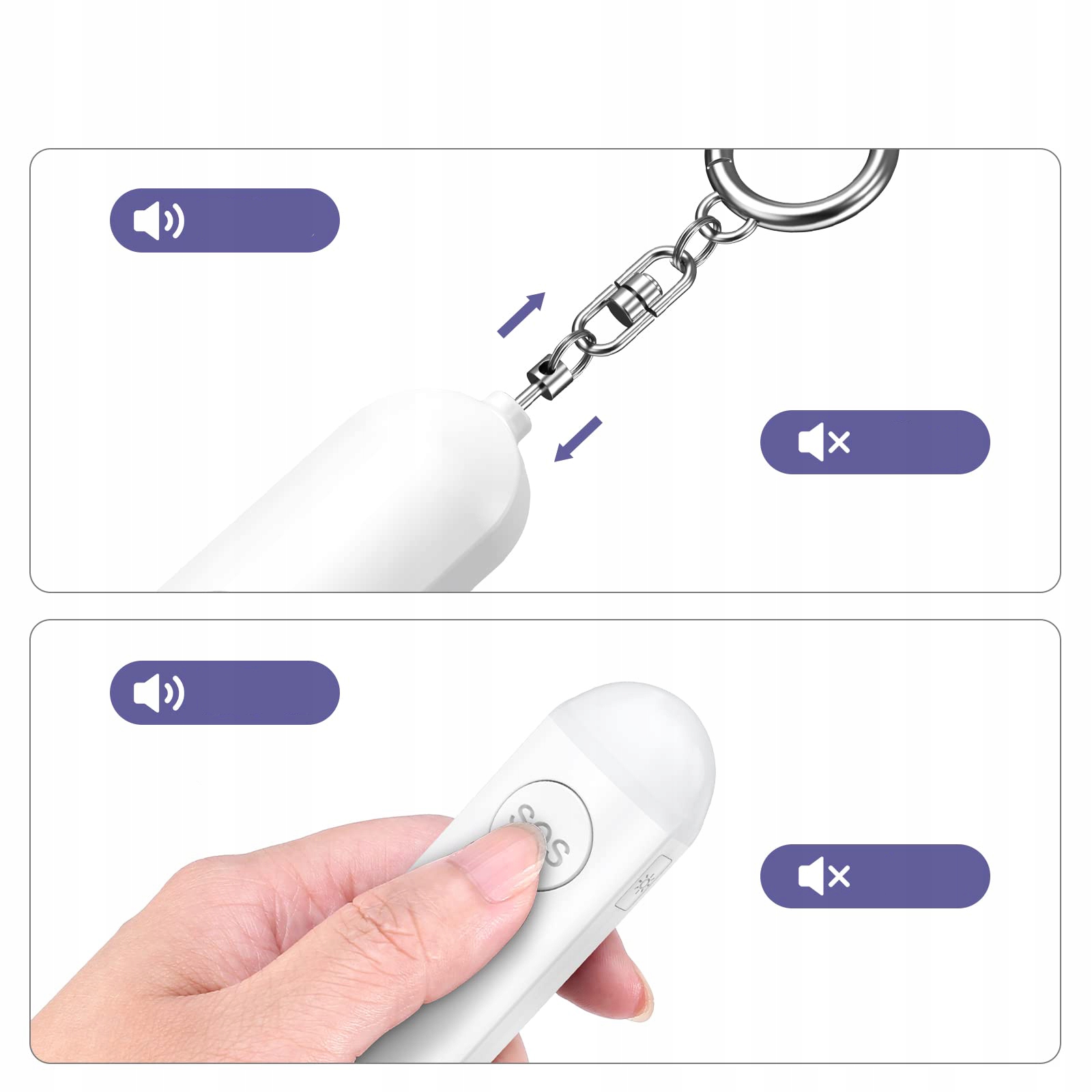 [Сигналізація самооборони] Ця кишенькова сигналізація захистить вас! Якщо ви відчуваєте загрозу, гучний, пронизливий сигнал тривоги 130 дБ ефективно відлякає нападників або тварин і приверне увагу перехожих.