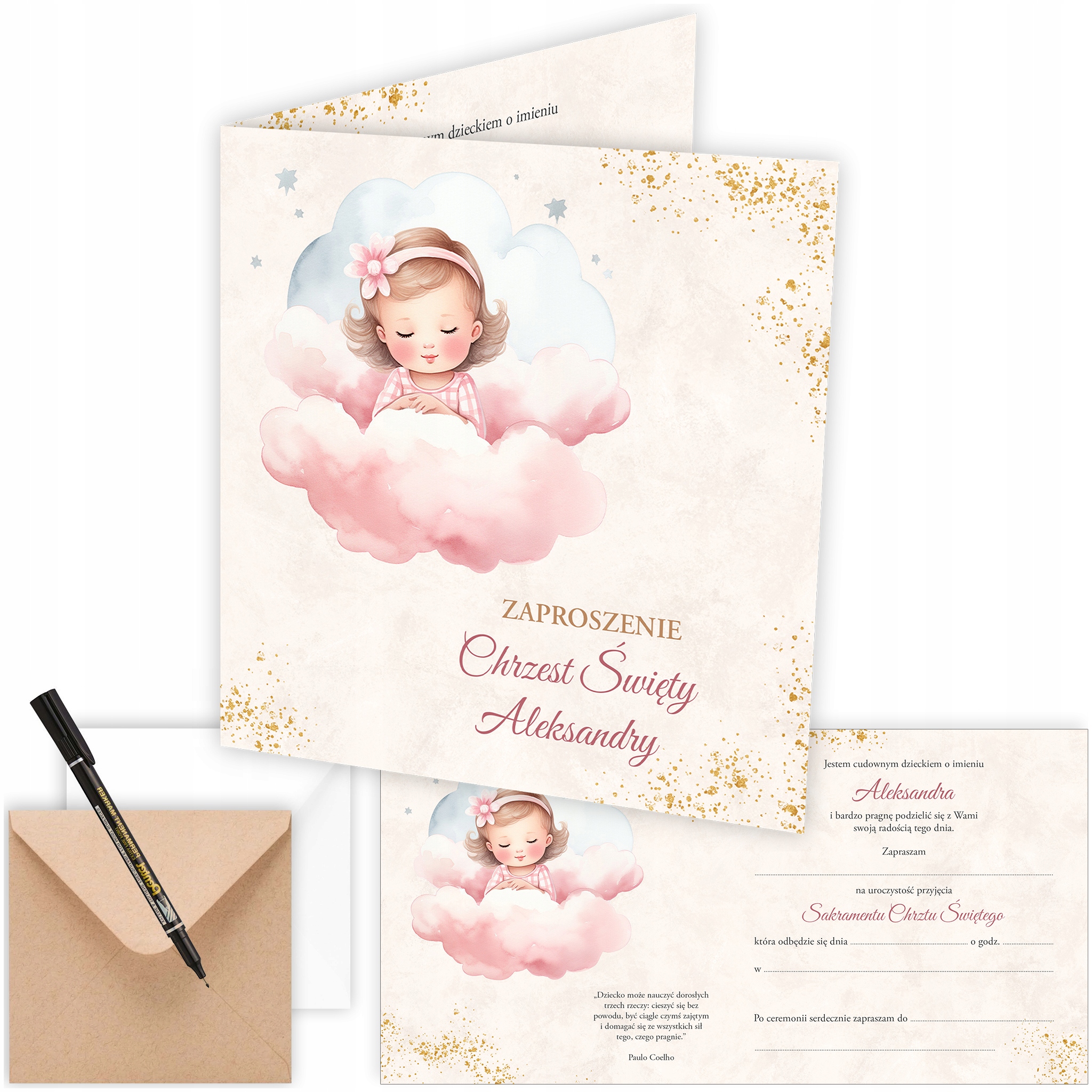 ЗАПРОШЕННЯ НА СВЯТЕ ХРЕСТИННЯ для дівчинки, персоналізовані конвертом - мотив ХМАРИ
