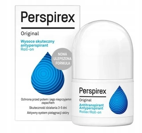Додаток При використанні сильних антиперспірантів можливе подразнення шкіри - печіння, почервоніння, свербіж. Perspirex містить систему захисту шкіри (комфортний і оригінальний варіанти), яка зменшує падіння рівня pH шкіри після використання препарату - завдяки цьому шкіра менше подразнюється і залишається комфортною.