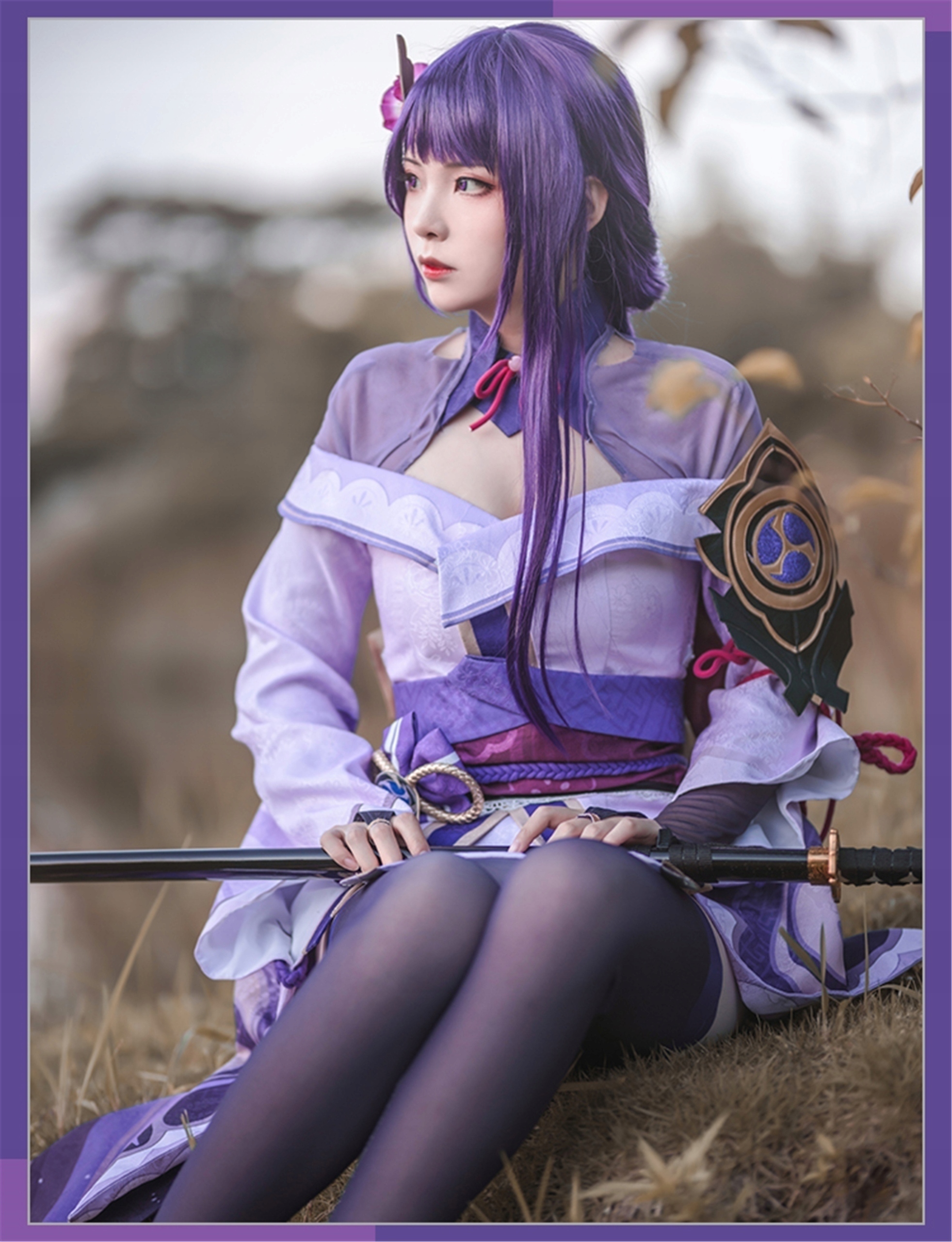 Перука для косплею Райден Шогуна фіолетового кольору 90 см