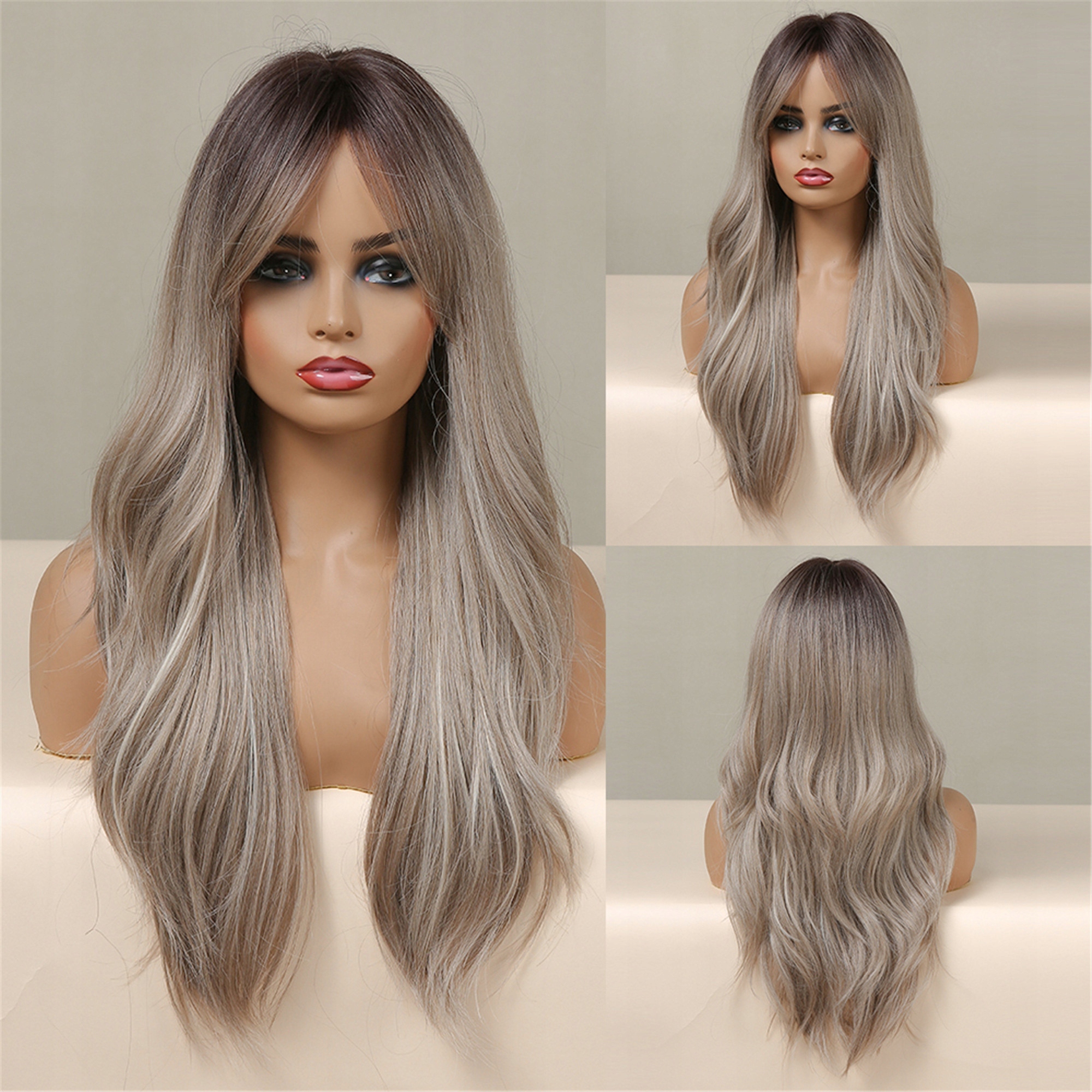 Peruka Jasny Brąz Długa Włosy Fale Naturalny