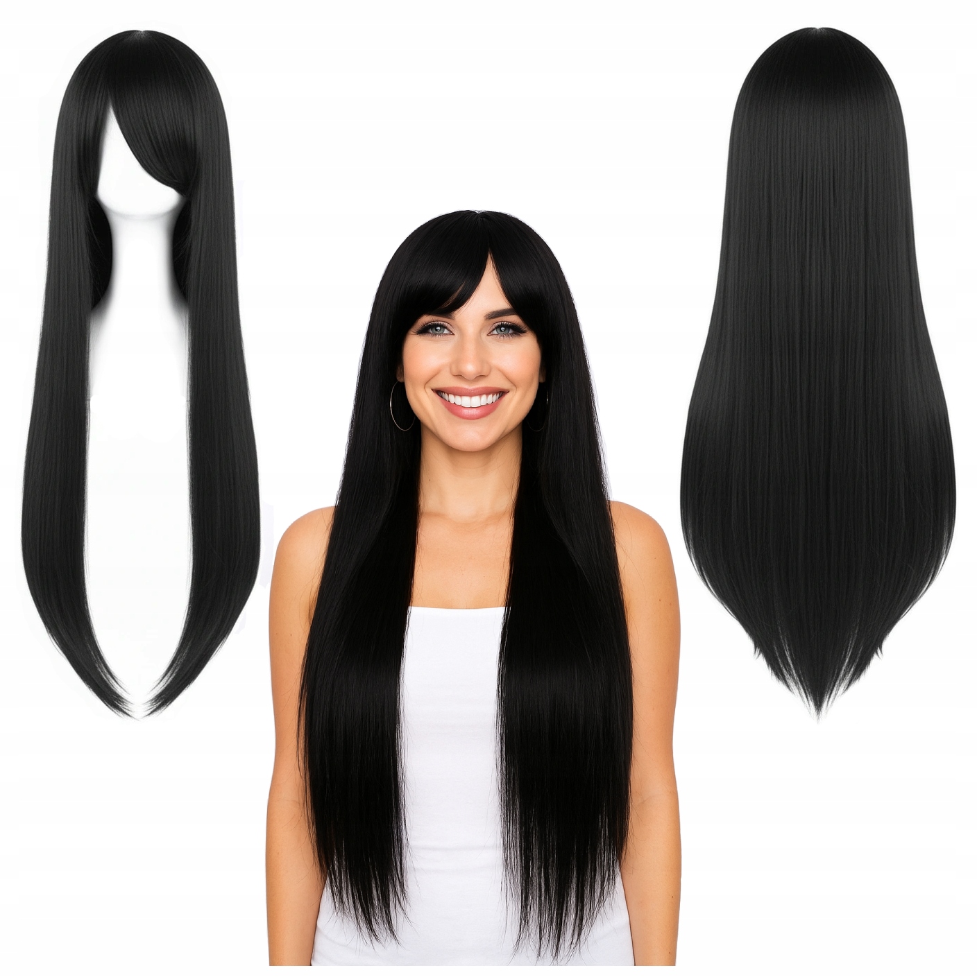 ПЕРУКА ЖІНОЧА ЧОРНА ДОВГЕ ВОЛОССЯ ПРЯМЕ 80см КОСПЛЕЙ МАСКУВАННЯ