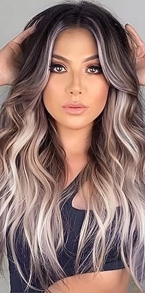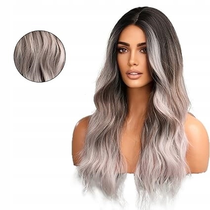 ПЕРУКА ЖІНОЧА З ХВИЛЯМИ ОМБРЕ СИНТЕТИЧНА ЧОРНО-СІРА ДОВЖИНА 55 СМ