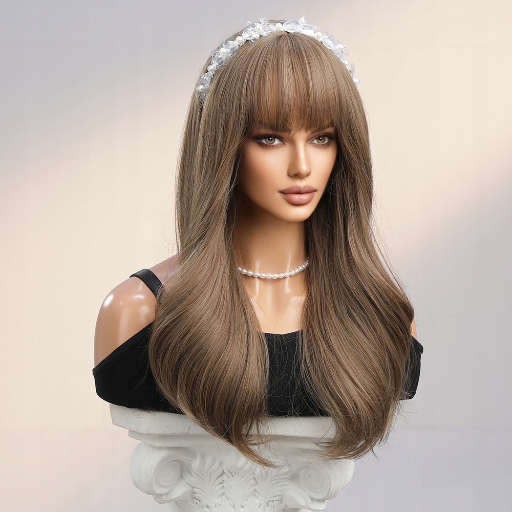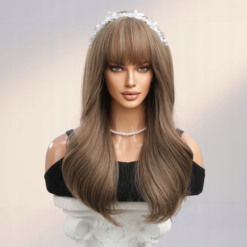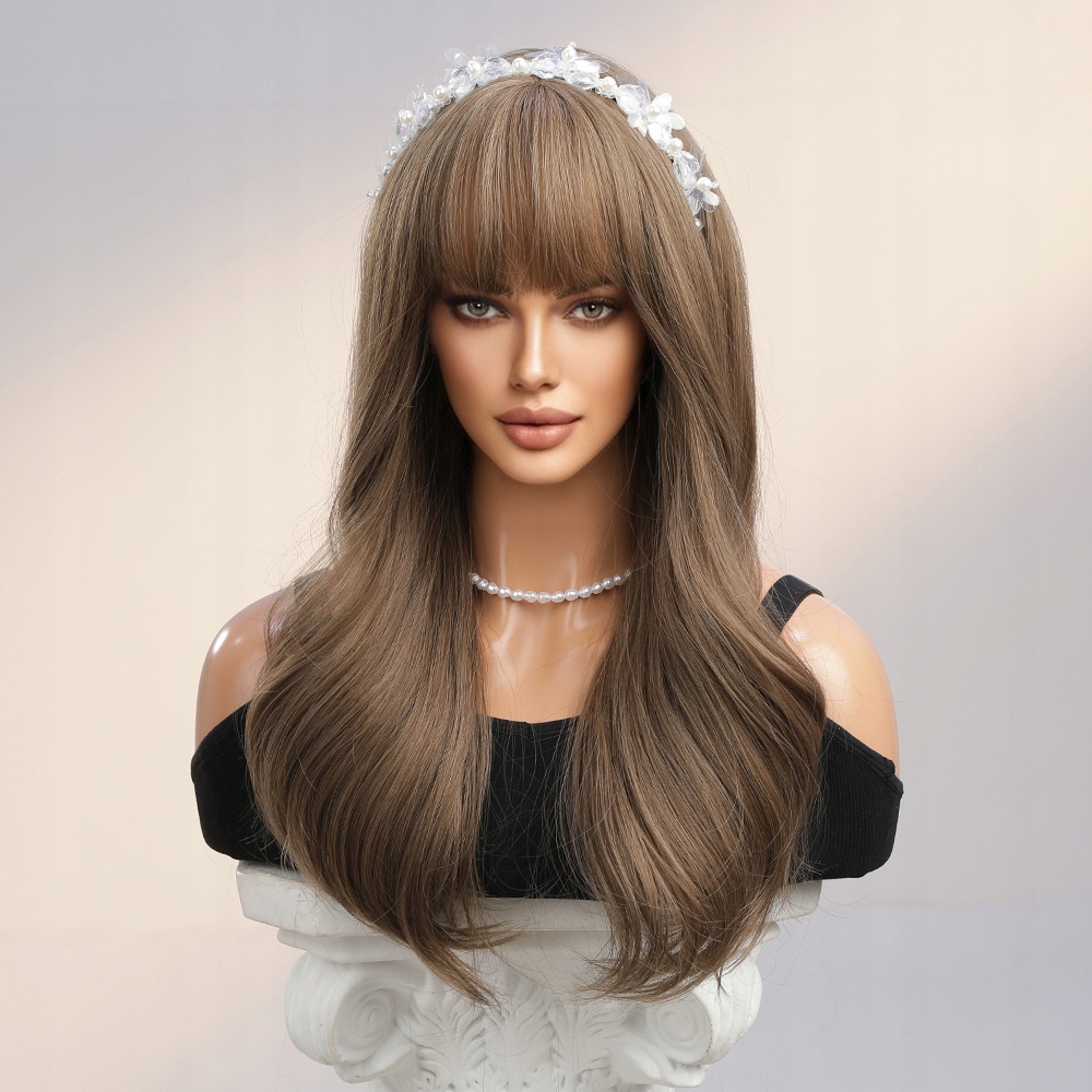 Перука Коричневе Довге Волосся Природні Хвилі З Чубчиком
