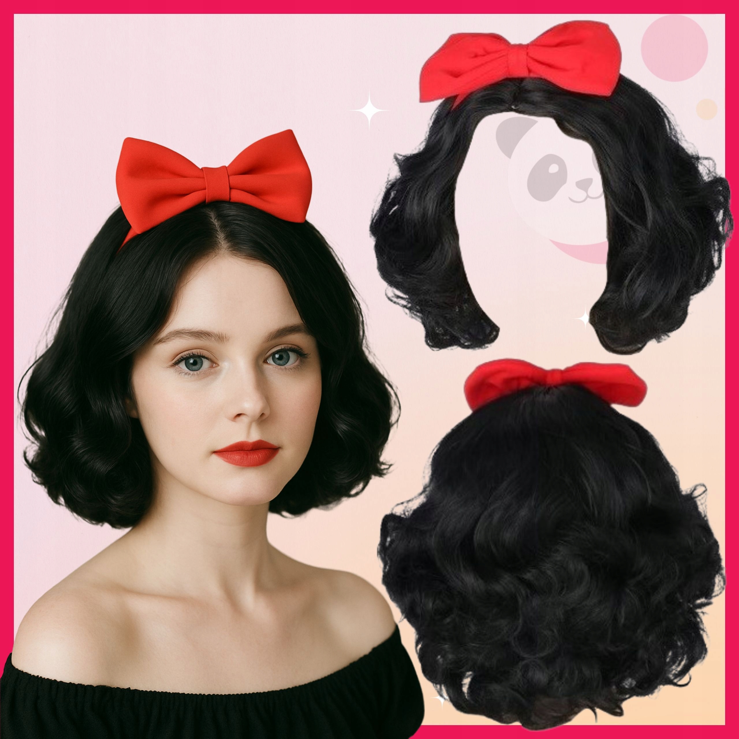 БІЛОСНІЖНА БІЛОСНІЖНА ПЕРУКА ЧОРНЕ ВОЛОССЯ БАНТ КАРНАВАЛЬ ДЛЯ ДОРОСЛИХ