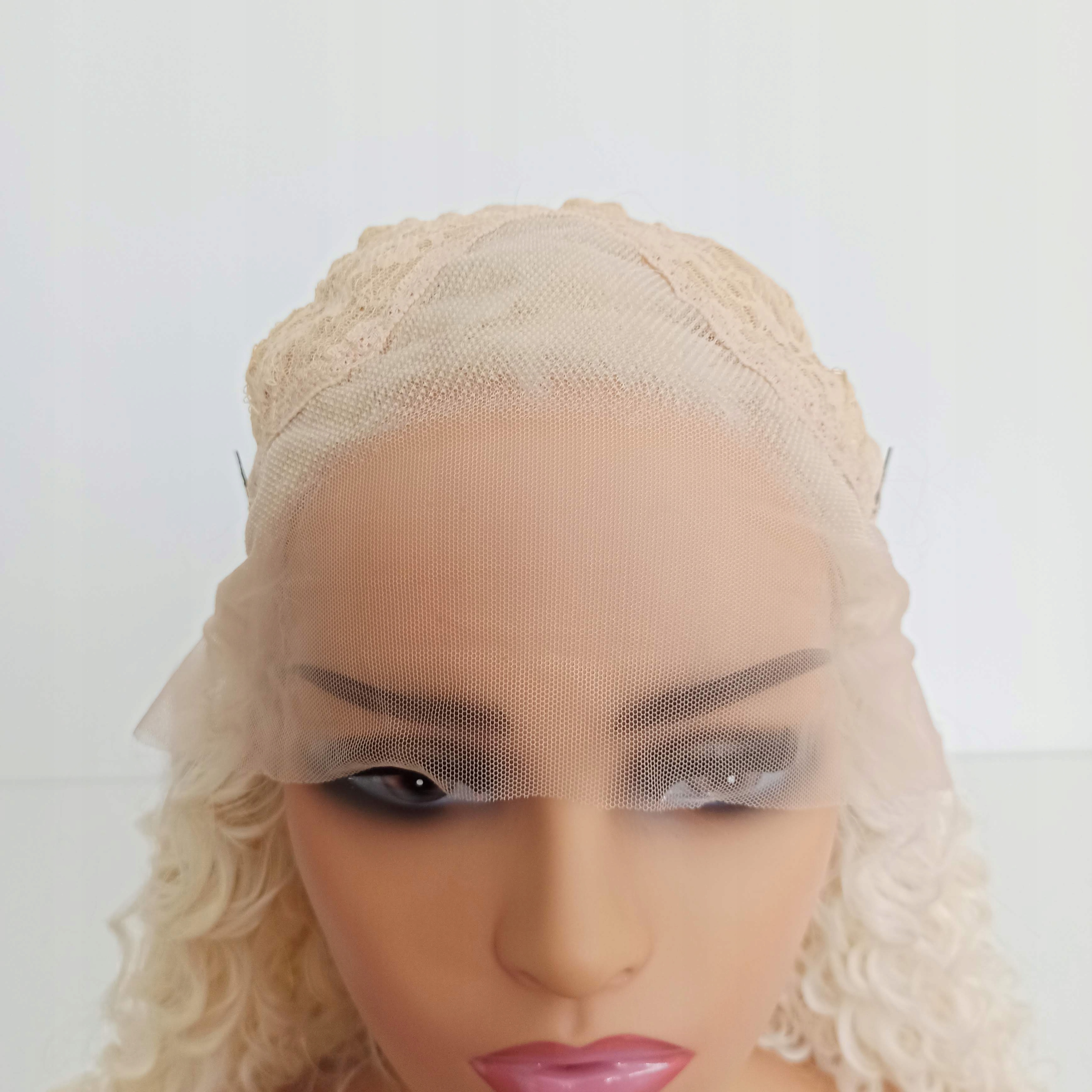 Перука LACE FRONT, світлий платиновий блонд, світлі кучеряві локони + шапка БЕЗКОШТОВНО