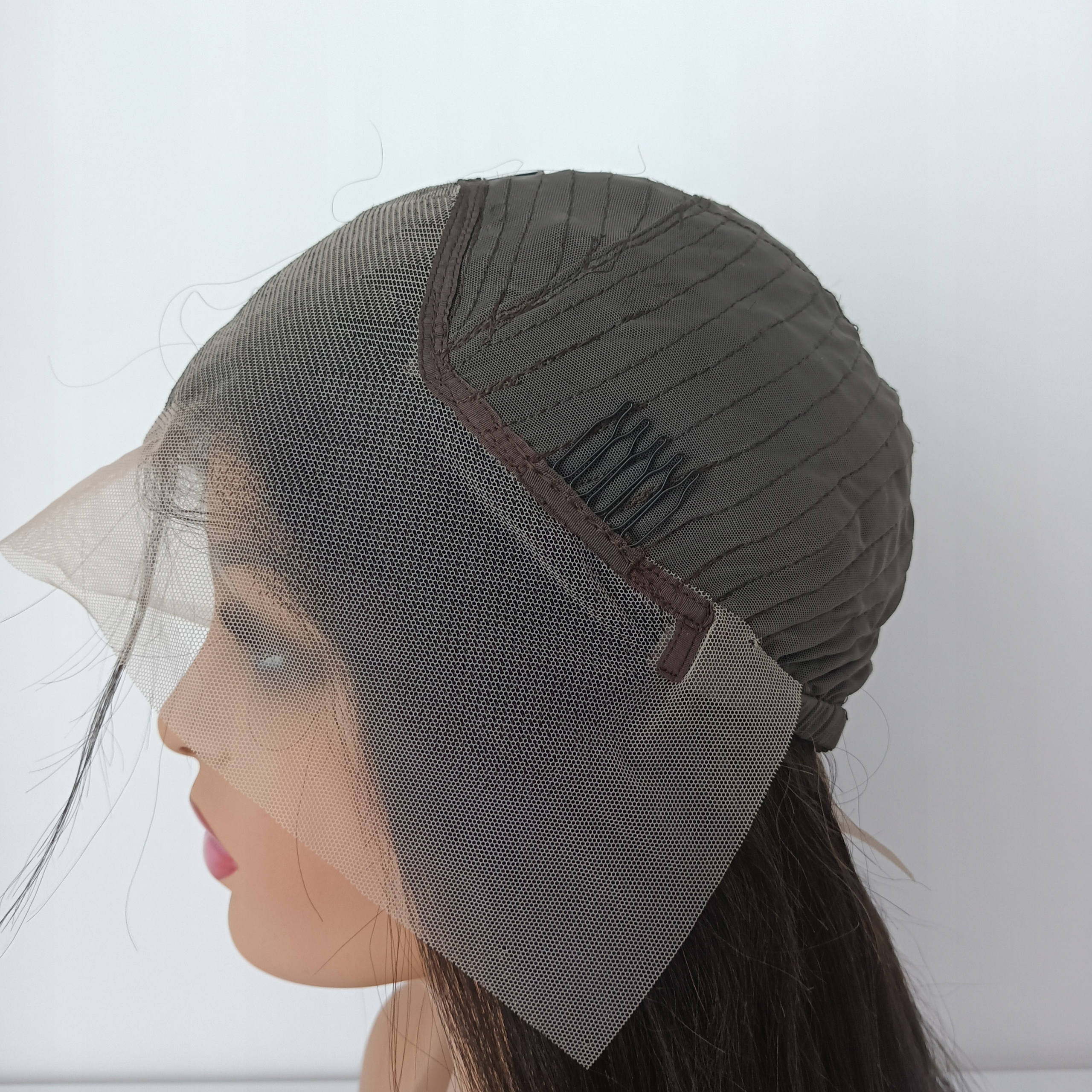 Сіточку можна замаскувати макіяжем, покривши її тональним кремом і пудрою, або видалити (відрізати) біля самого краю волосся. Ззаду має другу сіточку, завдяки якій ми можемо зав’язати волосся високо в пучок, а лінія шиї буде максимально природною.