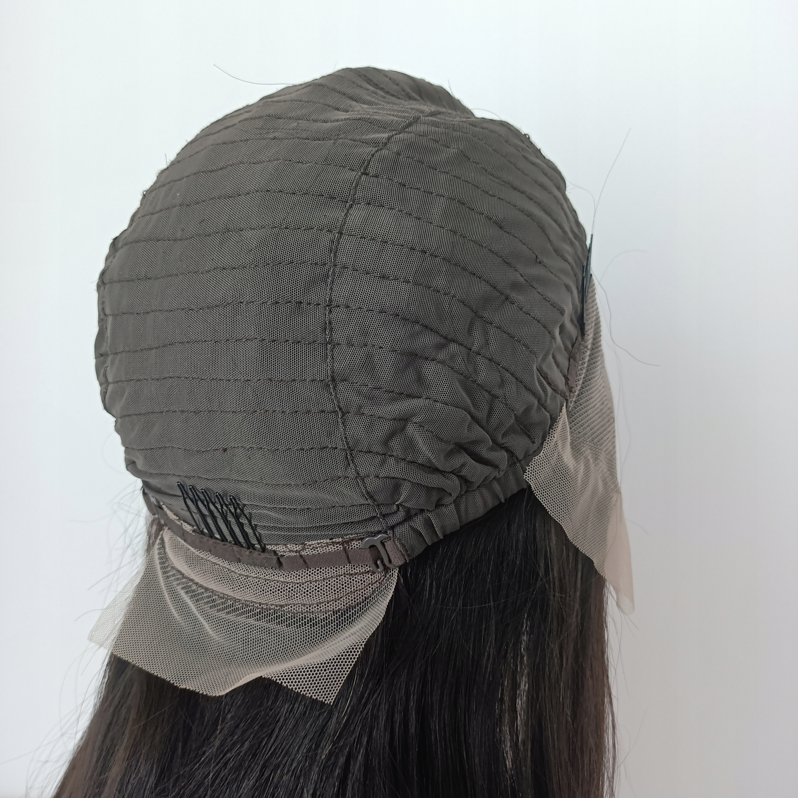 Всередині перуки кріпиться ремінець, який дозволяє регулювати окружність, завдяки чому перука ідеально облягає будь-яку голову. Він також має шпильки, які дають змогу підігнати перуку до волосся.