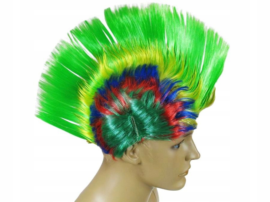 Перука мохайроки Панк -світло -зелений барвистий матч для матчів