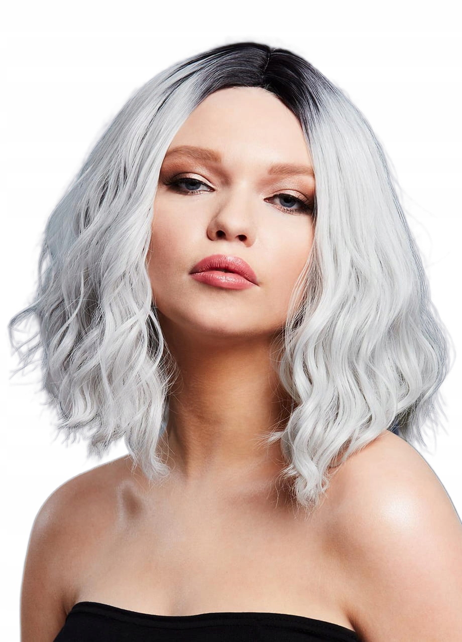 - перука фігурної форми зі штучного волосся сріблястого кольору,