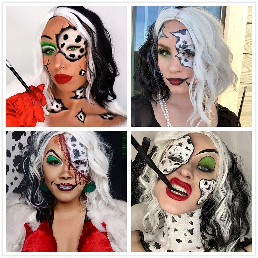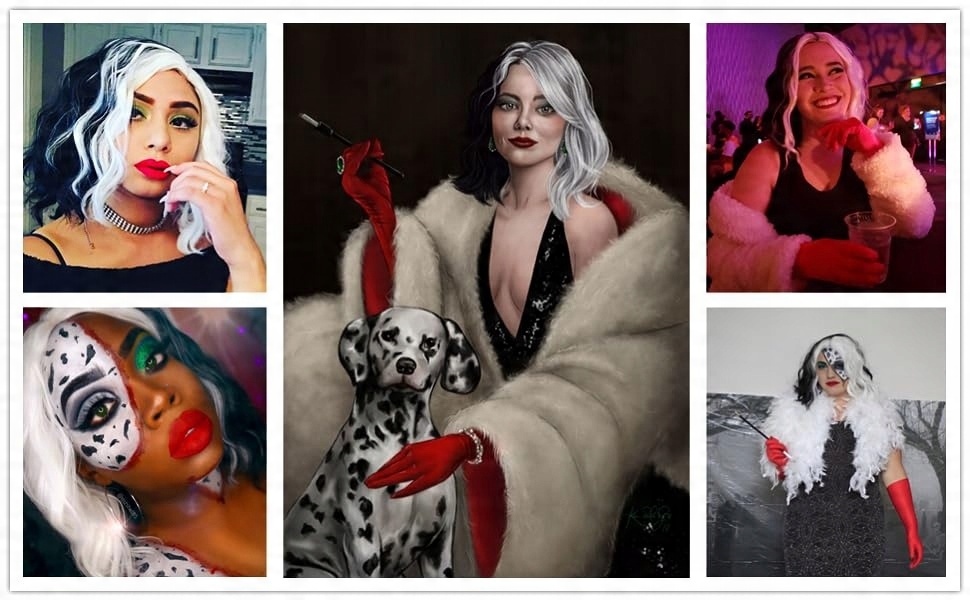 ПЕРУКА Перука CRUELLA De Vil косплей чорно-біла + АКСЕСУАРИ XY7