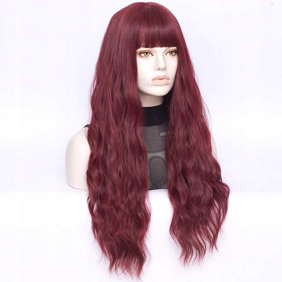 FVCENT – довга, кучерява синтетична перука з чубчиком (бордовий)