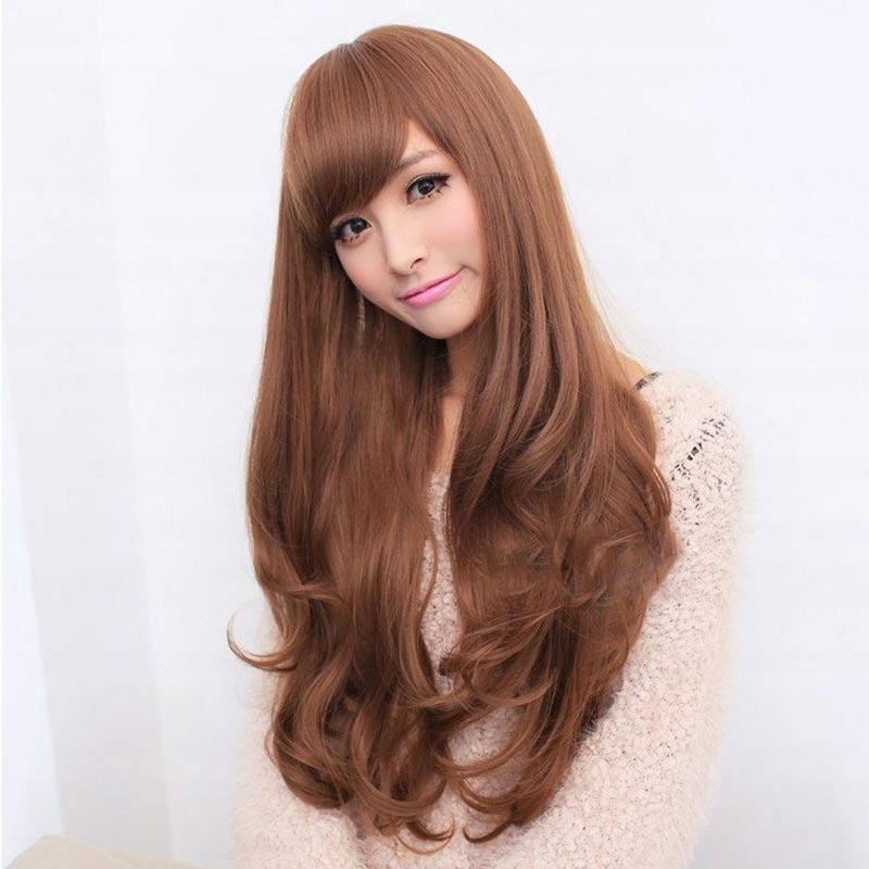 ПЕРУКА з чубчиком ДОВГА брюнетка КОРИЧНЕВІ хвилі ЧУБКА