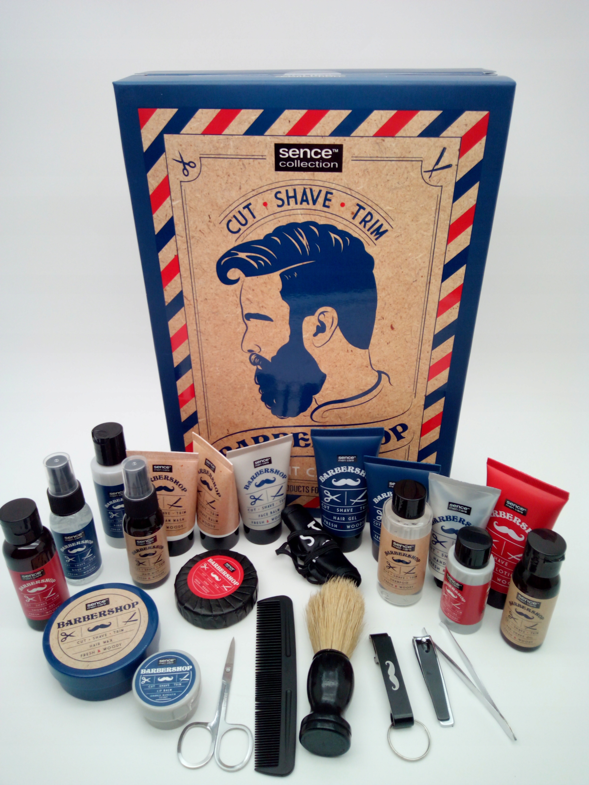 Barber Shop - це набір з чотирьох косметичних засобів, необхідних для підтримки вашої бороди, волосся та обличчя в хорошому стані. Зберігає ваше волосся на обличчі чистими та живить цілий день. Крім того, зволожує шкіру обличчя. Стильна упаковка та елегантний аромат роблять набір унікальним подарунком для кожного бороданя!