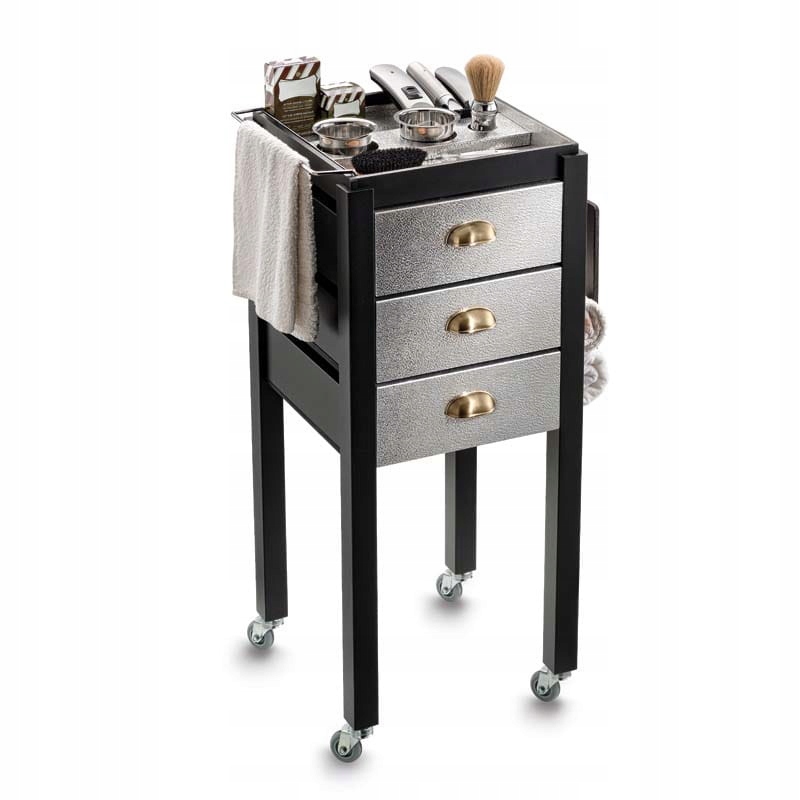 півзахисник перукаря необхідний у кожному професійному перукарню. Продукт є частиною меблів з елегантної та твердої лінії експрес -лінії, саме тому він зберігався у вічних чорних та срібних кольорах. Однак перукарі цінують функціональність цього помічника, оскільки він має широкий робочий простір і три місткі ящики. Тривалість також є важливою перевагою - продукт має міцну, хромовану конструкцію. Гладка поверхня значно полегшує очищення помічника, що ще більше прискорить і полегшить роботу у вашому перукарні.