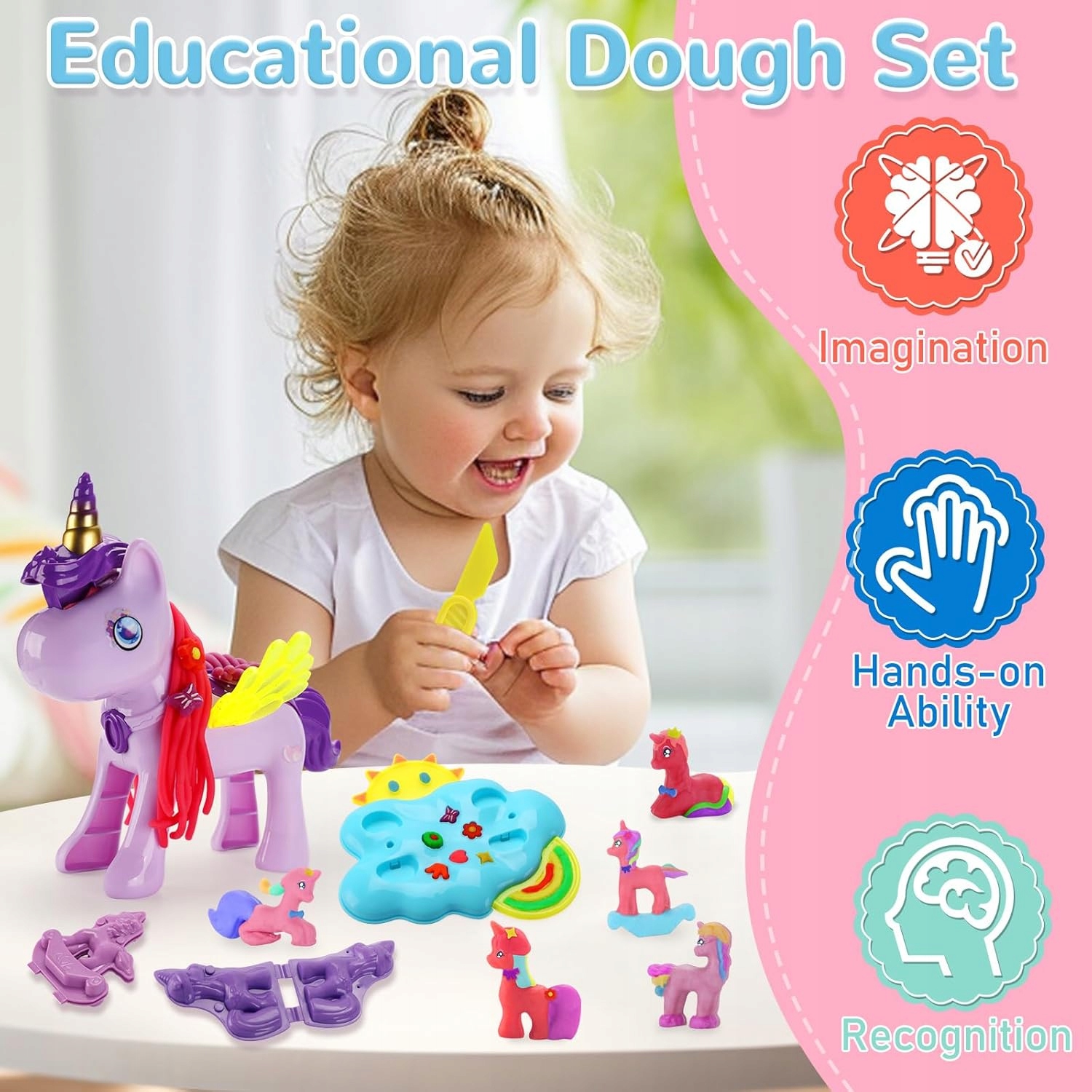 - 🦄Відкрийте магію єдинорогів: готуйтеся до подорожі у чарівний світ чудес єдинорога! Спостерігайте, як оживає уява ваших доньок, коли вони ліплять і формують власних єдинорогів. Незалежно від того, чи вони ліплять клан єдинорога, прикрашають палац єдинорога чи формують різнокольорових єдинорогів із веселковими гривами, наші захоплюючі набори для тортів із єдинорогом обіцяють незліченну кількість годин веселощів і вихід для безмежної уяви.