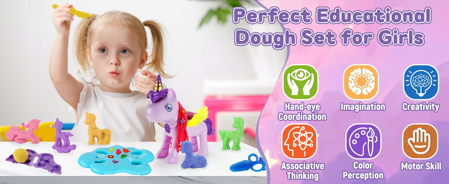 - Чудовий набір тіста для ігор для дітей: ігровий набір для тіста Play Dough для дітей у формі єдинорога барвистий і милий. У набір входить 36 аксесуарів для тортів, включаючи 1 єдинорога, 5 форм для єдинорогів, 1 пару крил, 3 форми для волосся, 3 форми для сідла, 1 основу, 1 ножиці, 1 ніж, 1 картку з візерунками та 16 шматочків торта 8 різних кольорів. Діти можуть створити своїх власних єдинорогів з усіма аксесуарами.