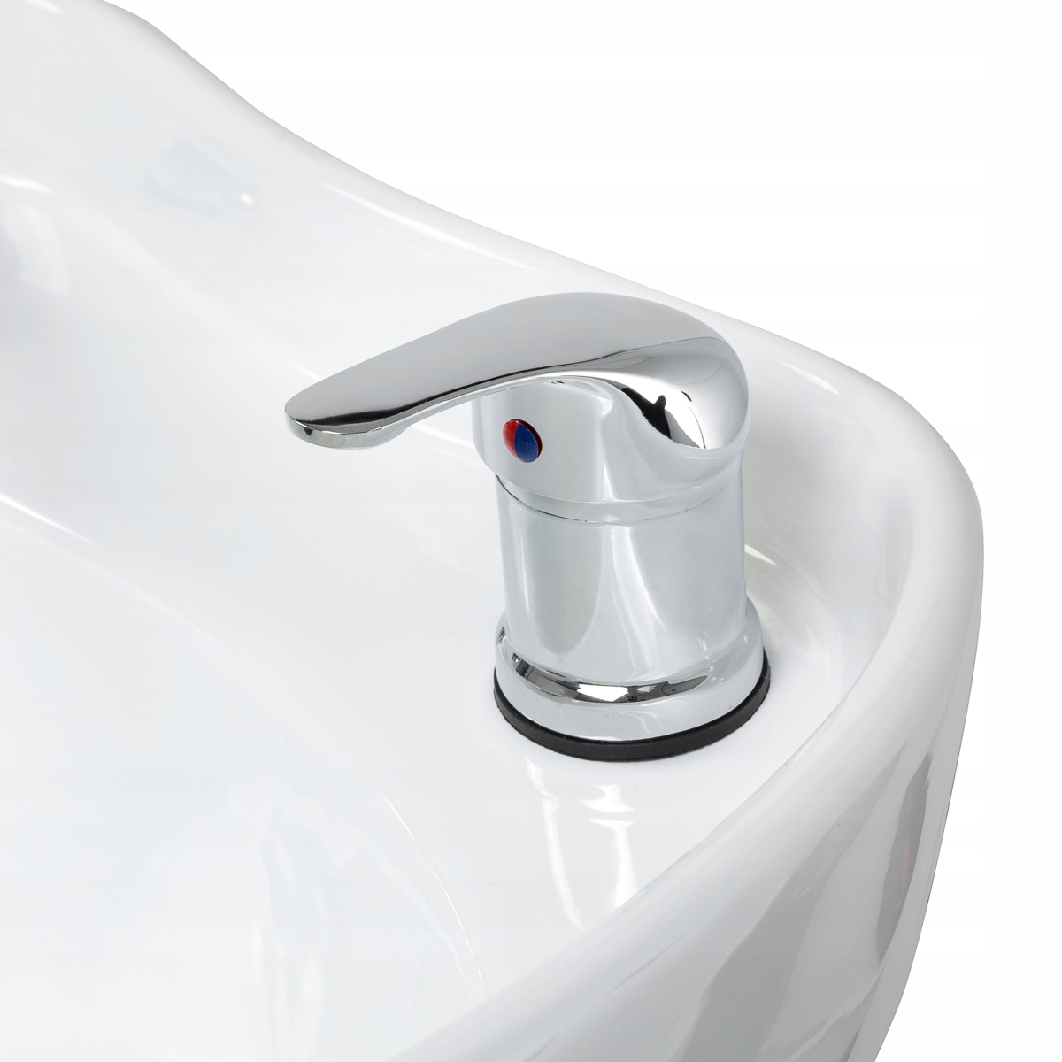Автомийка оснащена краном зі змішувачем, що дозволяє зручно використовувати гарячу та холодну воду та легко регулювати температуру відповідно до потреб клієнта. Практичне місце для розміщення душової лійки полегшує організацію роботи та допомагає підтримувати робоче місце в порядку. Сітчаста пробка дозволяє контролювати потік води, забезпечуючи дотримання високих стандартів гігієни. Набір включає повну арматуру - змішувач, душову лійку та спеціальні шланги, які створюють готовий до використання набір. Підключення до води розміщено всередині основи автомийки, що дозволяє естетично приховати інсталяцію. Основа автомийки має місця для кріплення до землі - це рішення підвищує стійкість всієї конструкції. Поєднання функціональних рішень і продуманих деталей перетворюється на комфорт повсякденної роботив перукарні.