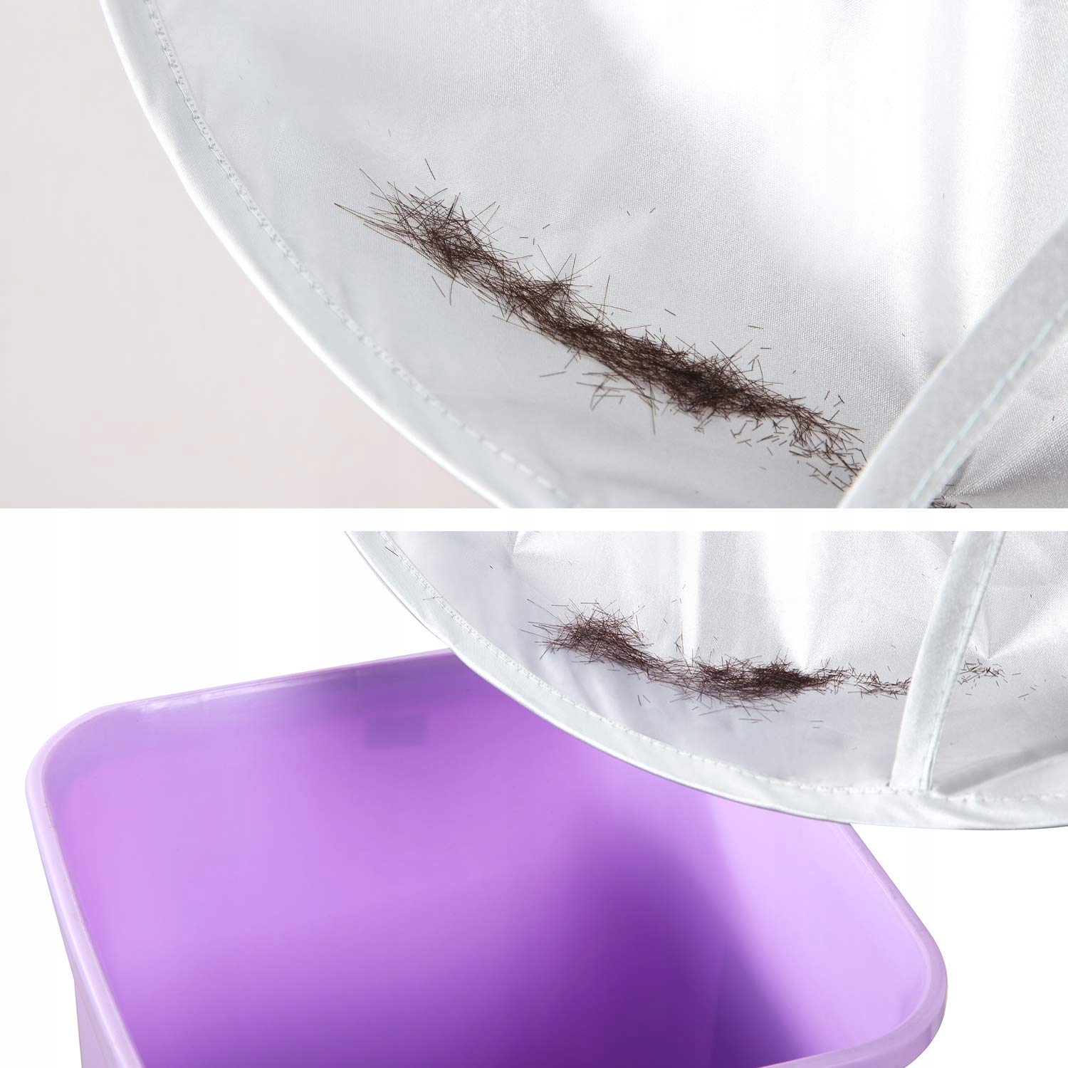 - Зручність, коли стрижка - Продукт був розроблений таким чином, що стрижне волосся не падає на шию і підлогу, але зупиняється на комірі, завдяки якому ми заощаджуємо час і продовжуємо порядок клієнтом - вам не потрібно підмітати волосся, і у клієнта немає проблем із крихітним волоссям, яке часто залишається на шиї.
