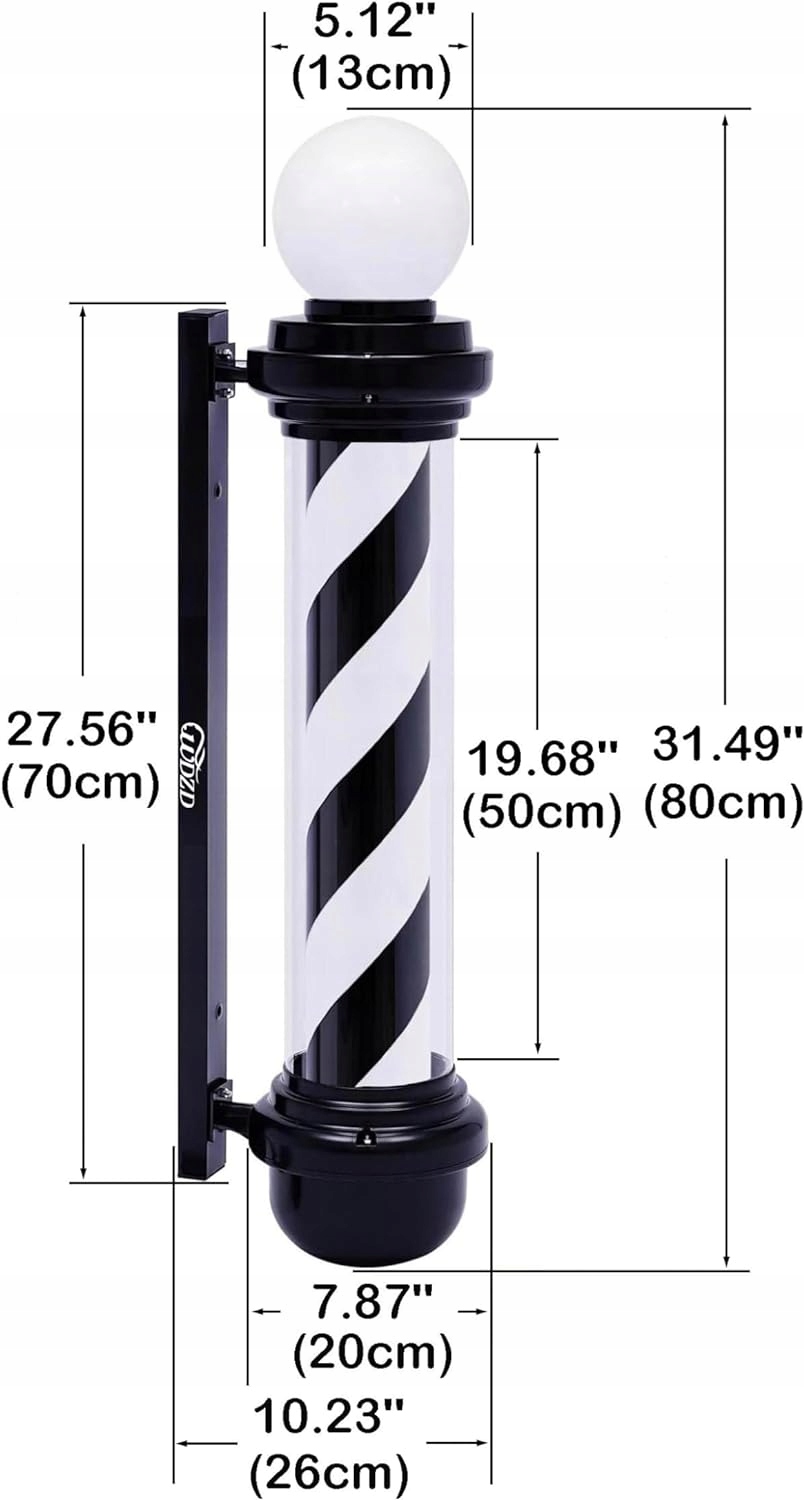 Світлодіодний перукарський стовп 80 см з підсвічуванням з чорно-білими смугами, що зробить вашу перукарню більш помітною. Стовп для перукаря світиться та обертається, щоб допомогти залучити нових клієнтів удень або в темряві.