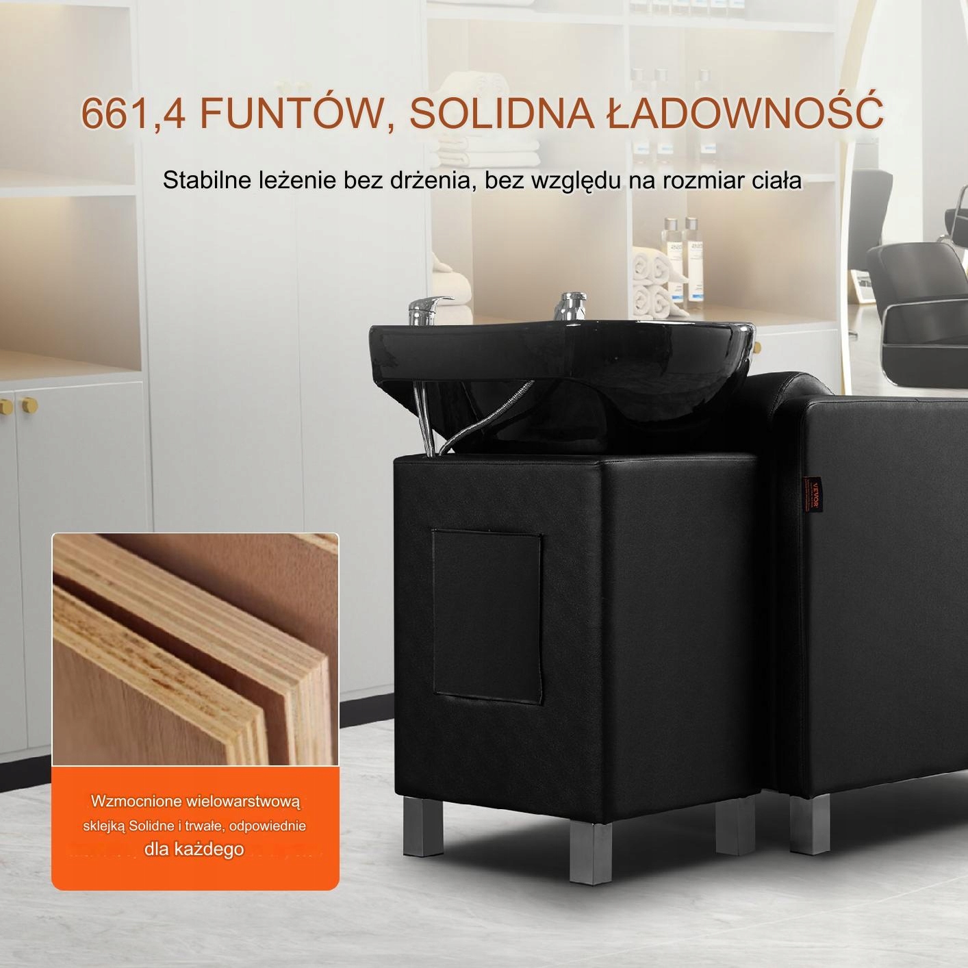 Посилена багатошаровою фанерою та скловолокном салонна станція для миття волосся забезпечує відмінну стабільність. Він може витримувати навантаження до 300 кг, тому підходить для користувачів різного зросту. Обтічна форма корпусу зі зручним кутом нахилу не лише додає елегантності, але й забезпечує відчуття відпочинку.