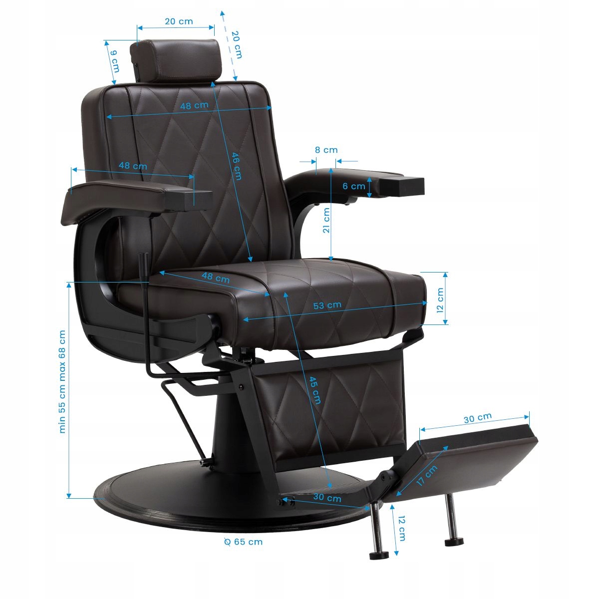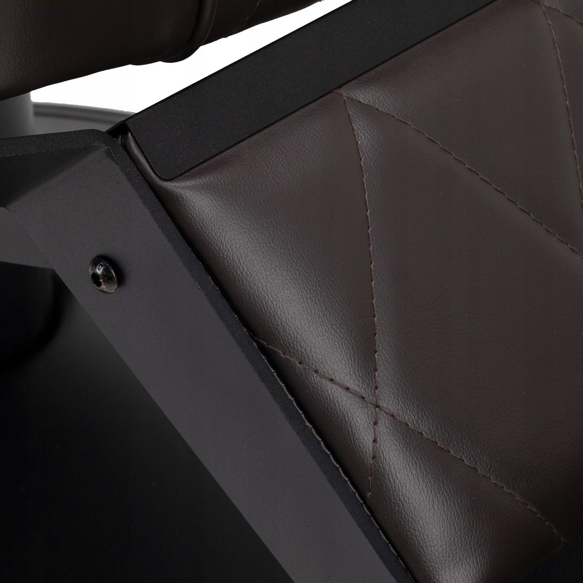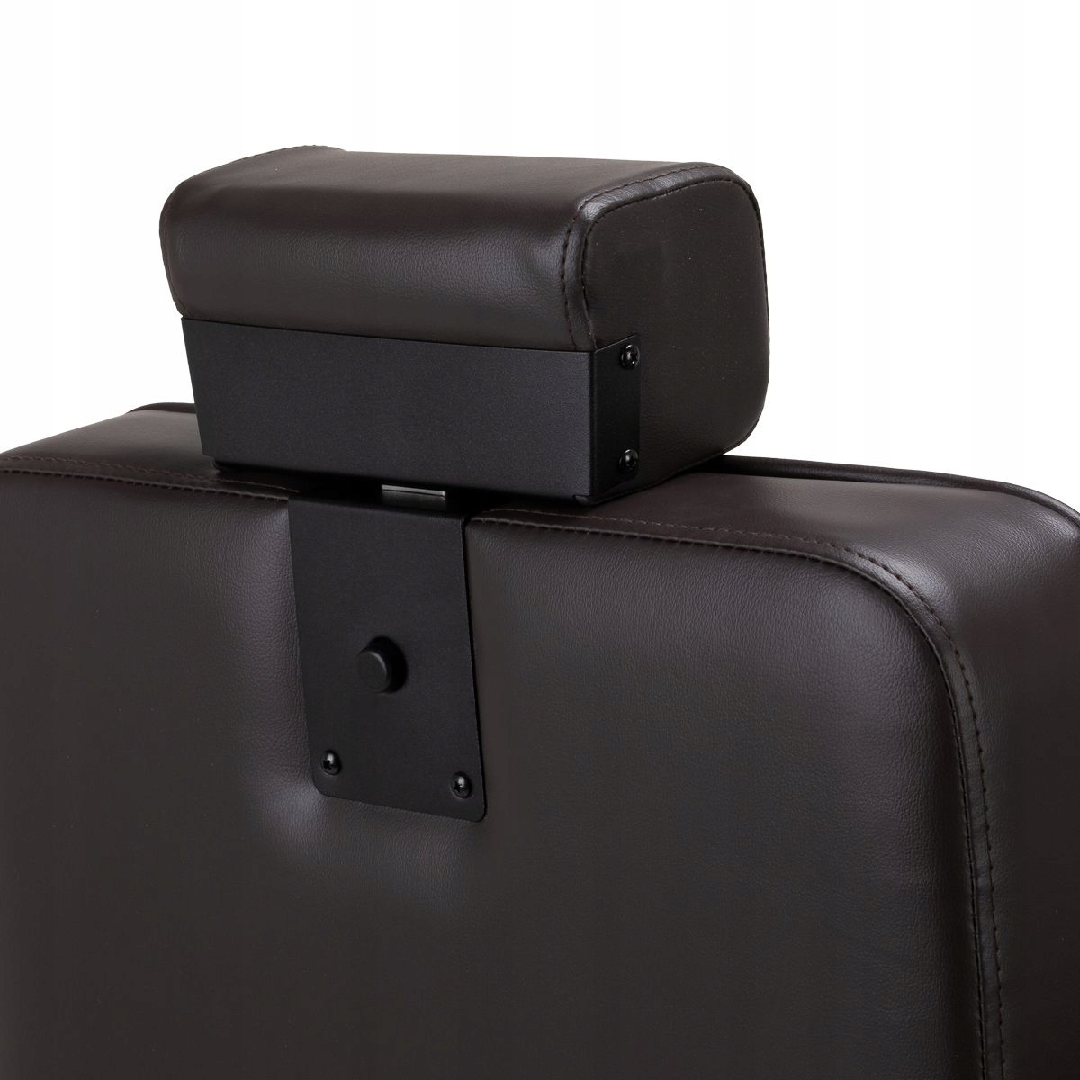 Міцна конструкція круглої основи забезпечуєстабільність і високий комфорт використання. Наповнення сидіння виконано зі стійкого до деформацій поролону, а оббивка виконана з приємного на дотик шкірозамінника з матовим покриттям, що забезпечує довговічність меблів і комфортне використання протягом тривалого часу. Стильна прострочка на оббивці надає крісла характер, що нагадує автомобільний дизайн, що підкреслює його елегантний зовнішній вигляд. Вони також роблять обладнання стійким до вологи, міцним і простим у чищенні. Коричневе покриття надає йому унікальний характер, а мінімалістичний стиль дозволяє вписати його в декор будь-якої перукарні.
