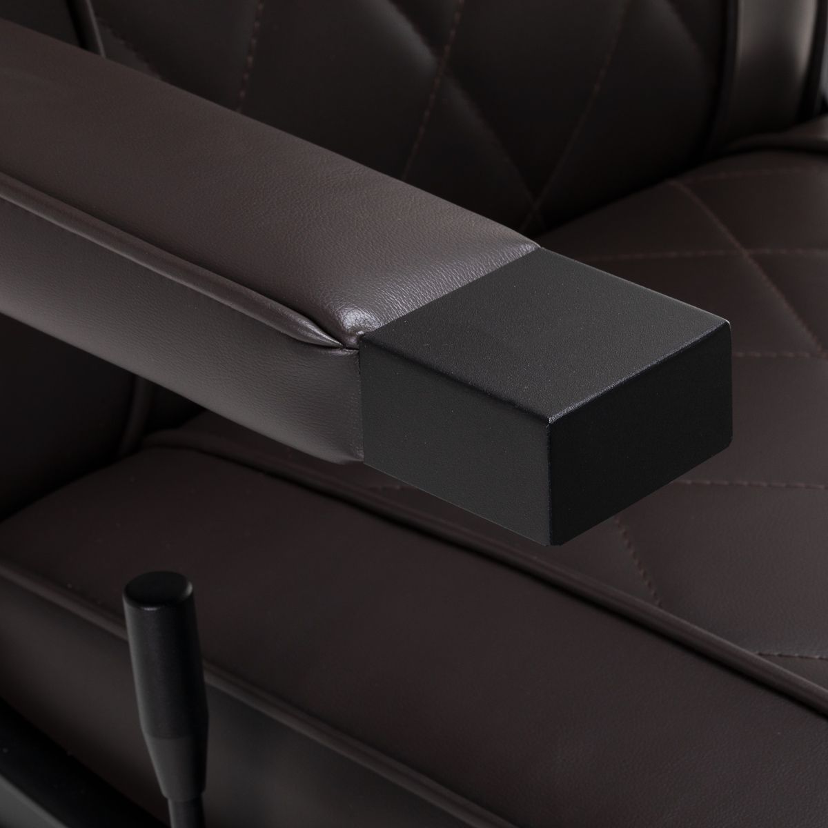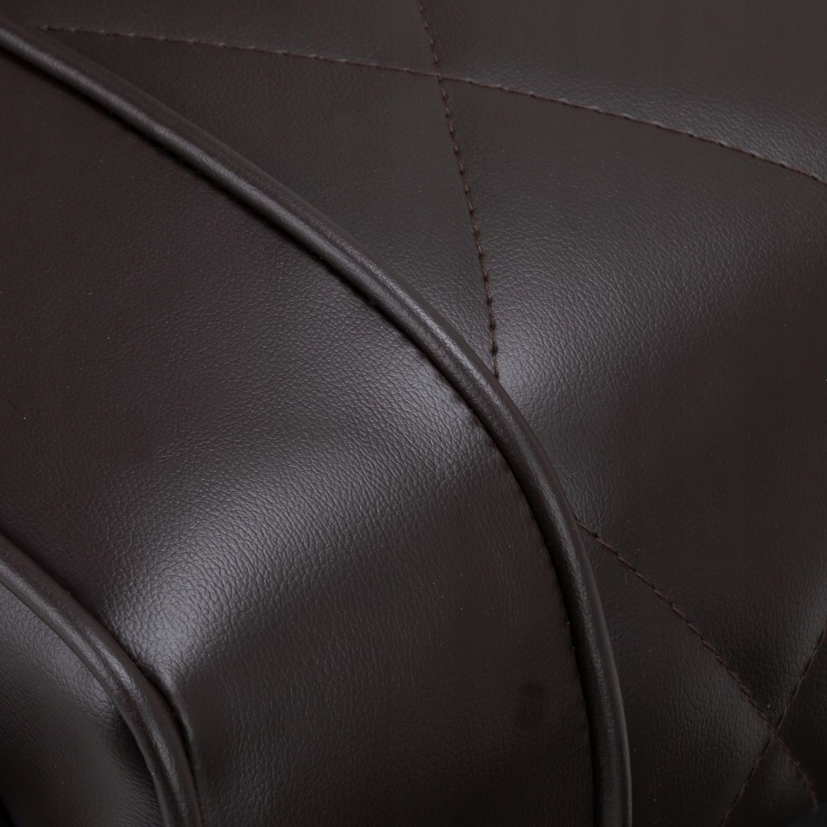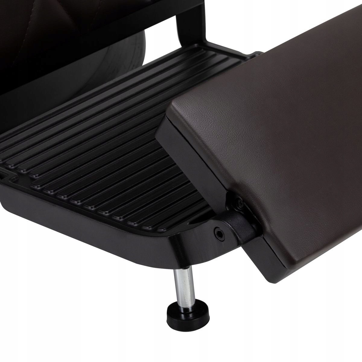 Міцна конструкція круглої основи забезпечуєстабільність і високий комфорт використання. Наповнення сидіння виконано зі стійкого до деформацій поролону, а оббивка виконана з приємного на дотик шкірозамінника з матовим покриттям, що забезпечує довговічність меблів і комфортне використання протягом тривалого часу. Стильна прострочка на оббивці надає крісла характер, що нагадує автомобільний дизайн, що підкреслює його елегантний зовнішній вигляд. Вони також роблять обладнання стійким до вологи, міцним і простим у чищенні. Коричневе покриття надає йому унікальний характер, а мінімалістичний стиль дозволяє вписати його в декор будь-якої перукарні.