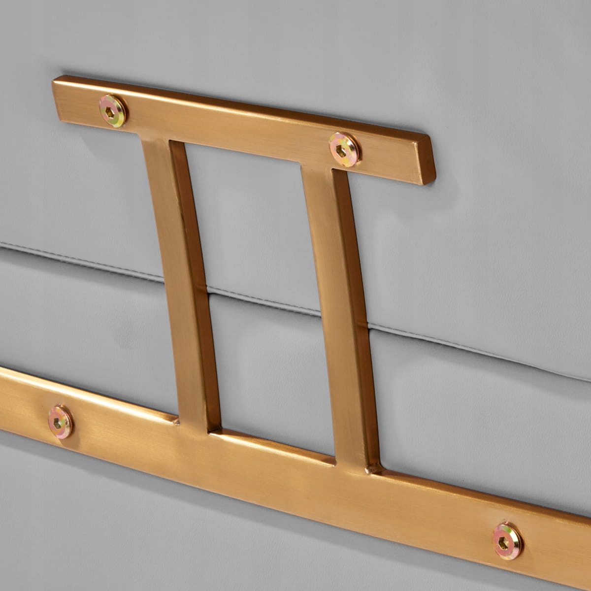 Геометричні металеві підлокітники відтінків золота дозволяють правильно розташувати плечі клієнта - це означає, що клієнт не ховає голову в плечі та не сутулиться - що чітко забезпечує це легше виконувати точні процедури, зокрема стрижки.