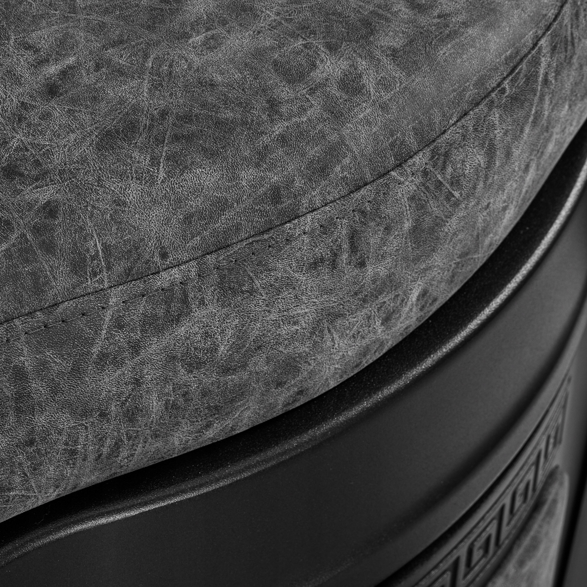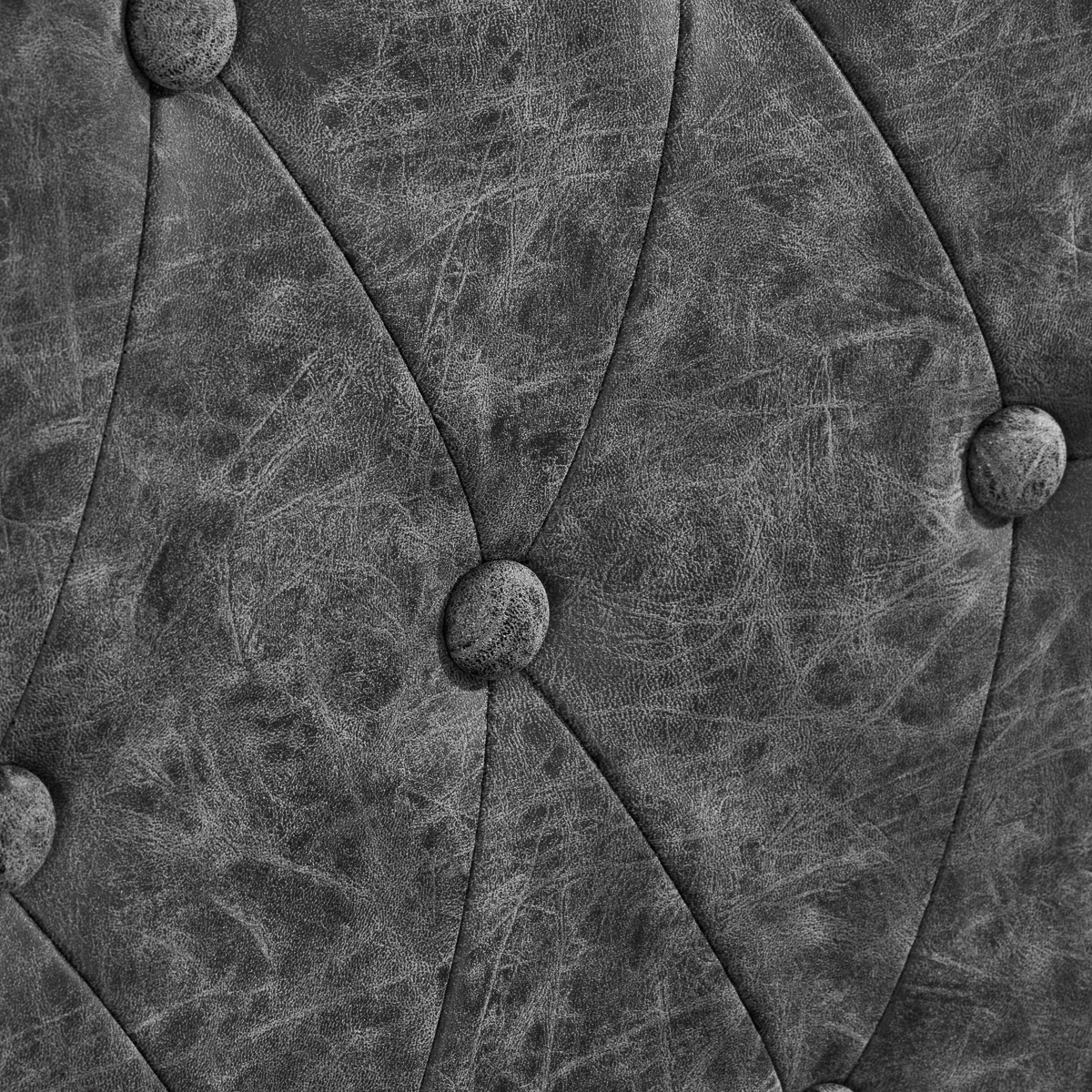 Сільна структура основи забезпечує стабільність і високий комфорт використання. Наповнення сидіння виконано з міцного, стійкого до деформацій поролону, а оббивка - з приємної на дотик синтетичної шкіри з матовою поверхнею з ефектом старіння, що забезпечує довговічність меблів і комфортне використання протягом тривалого часу. . Вони також роблять обладнання стійким до вологи, міцним і простим у чищенні. Сіра обкладинка з стьобанням і декоративними ґудзиками надає їй унікальний характер. Крісло з характерним дизайном, що відсилає до стилю вінтаж, ідеально вписується в атмосферу перукарень, підкреслюючи їх неповторну атмосферу.