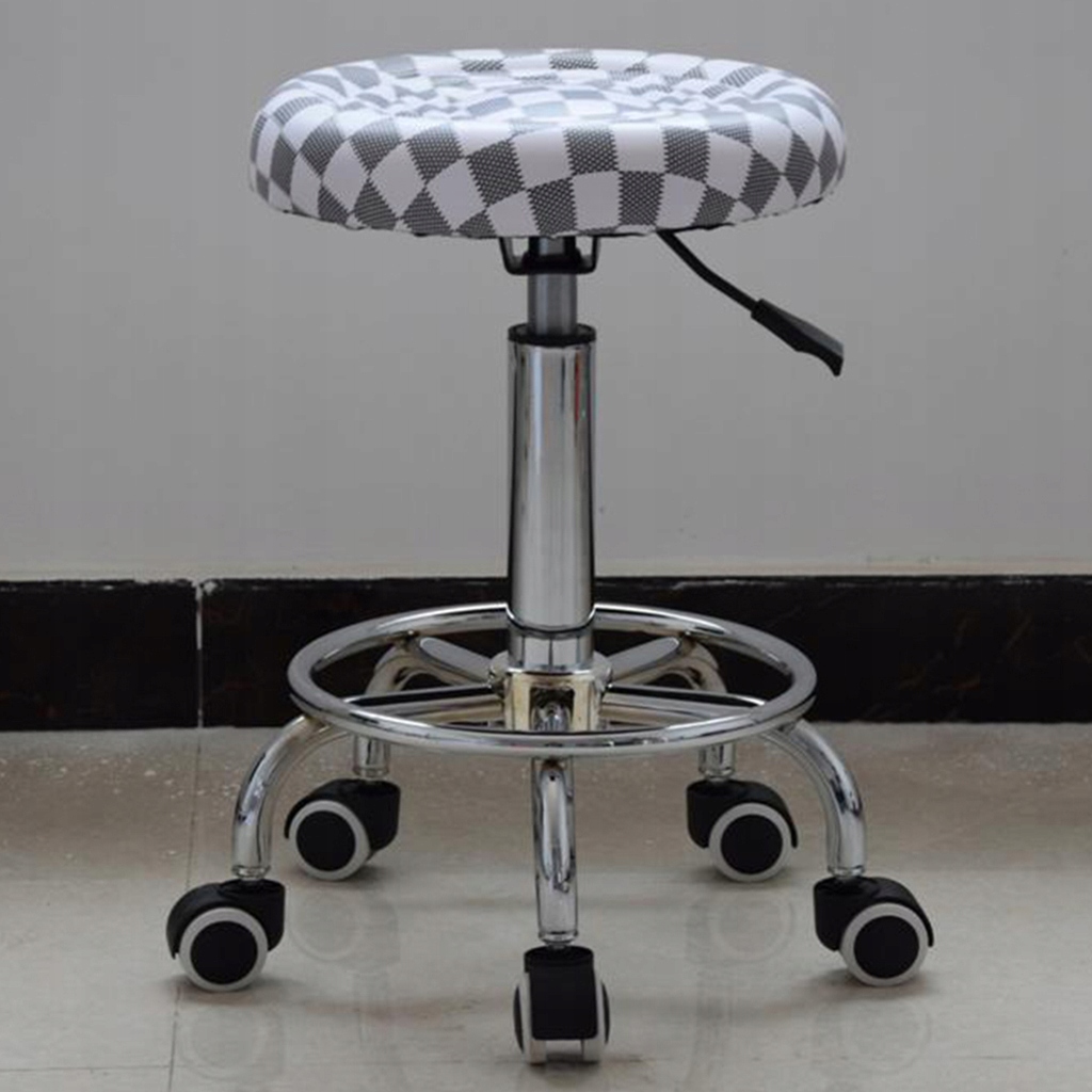 Регульований табурет має легку конструкцію з високоякісної PU шкіри преміум-класу, хромованої залізної основи з підставкою для ніг і міцними нейлоновими колесами для легкого ковзання по кімнаті