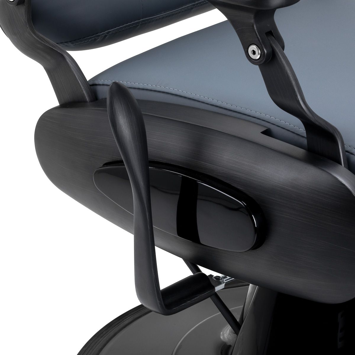 Стабільна базова конструкція з елементами в відтінках чорного кольору забезпечує високий комфорт використання. Наповнення постійною, стійкою до деформаційної піни та оббивки, виготовленої з приємної до сенсорної синтетичної шкіри , забезпечують довговічність меблів та її комфортного використання протягом тривалого часу. Вони також роблять обладнання стійким до вологи, довговічним та простим у чищенні . Покриття в відтінках графіту разом з оригінальними квілінгами та декоративними кнопками дає йому спеціальний символ . Дизайнерські декоративні елементи, натхненні мотоциклами, посилаючись на старовинний стиль , ідеально відповідають атмосфері перукарських салонів, створюючи їх дивовижну атмосферу.