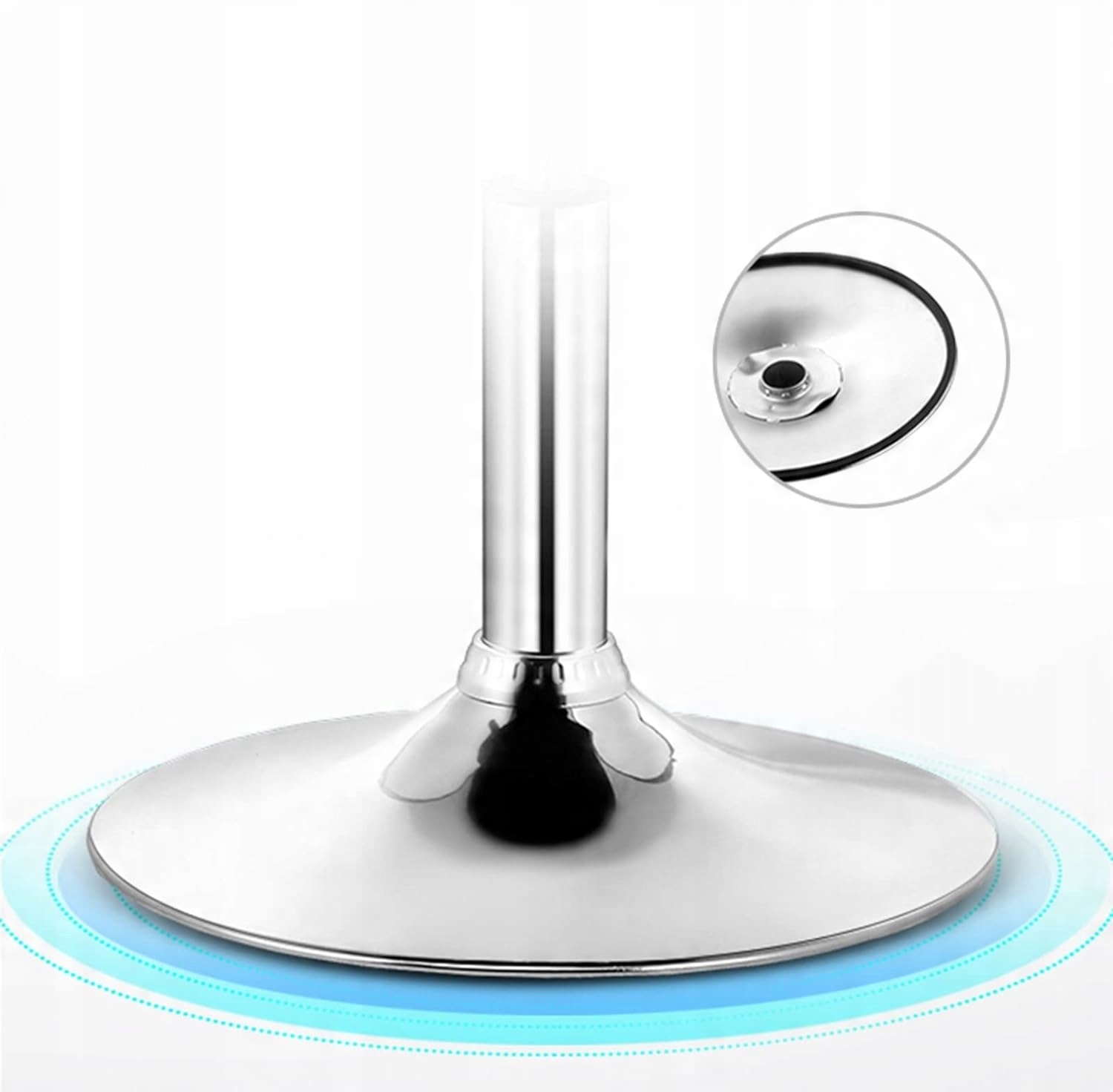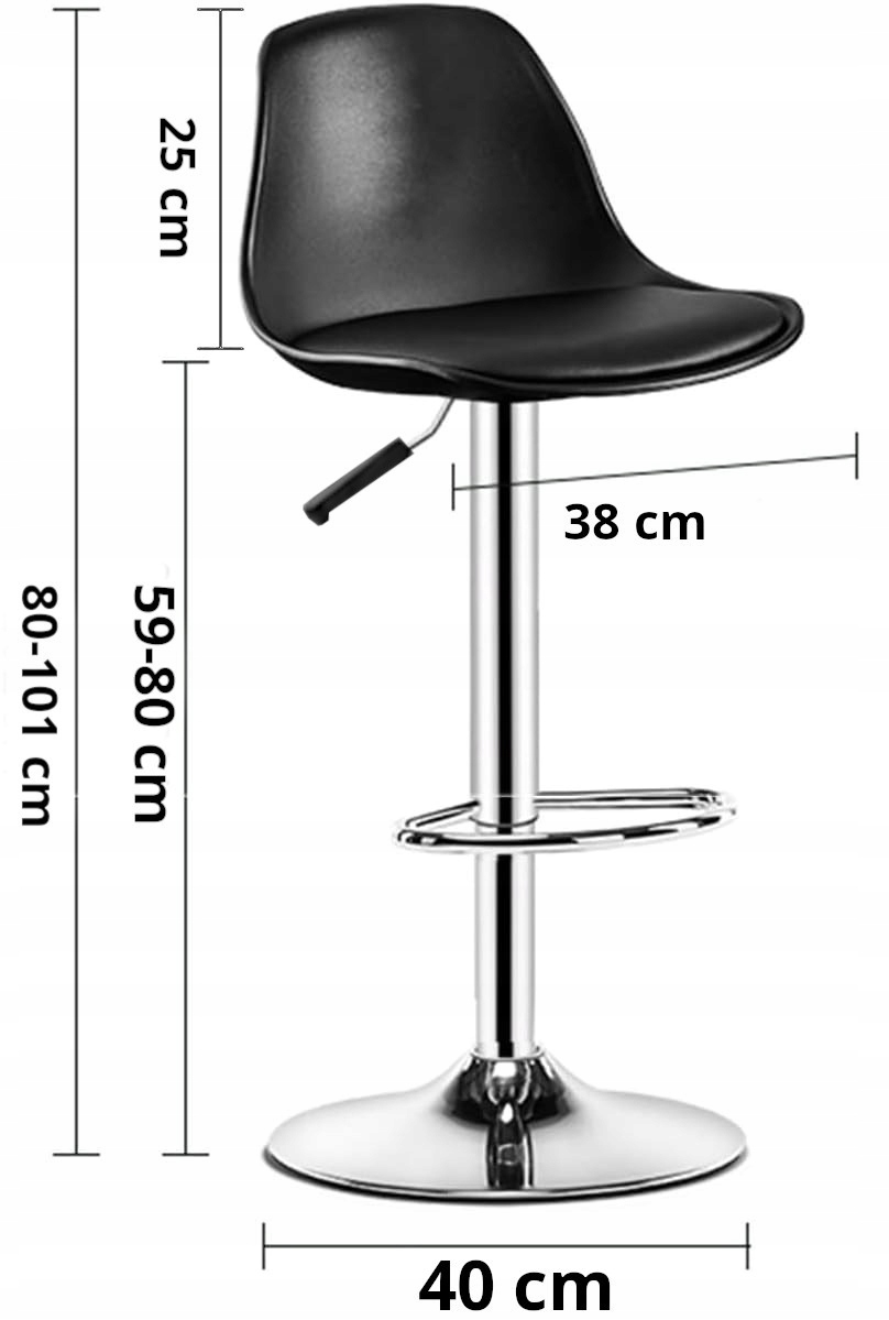Табурет оснащений ручкою, яка дозволяє регулювати висоту сидіння за допомогою пневматичного приводу. Стріла має підніжку, на яку ми можемо спиратися ногами. Широка металева основа забезпечує стійкість сидіння. Сидіння обертається навколо власної осі, що полегшує прийняття зручного та відповідного положення стіл або бар