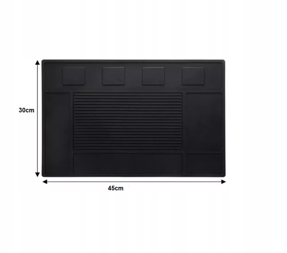 Професійний перукарський килимок є необхідним аксесуаром у кожній перукарні та перукарні. Виготовлений із високоякісного нековзкого матеріалу, він захищає стільницю від подряпин, бруду та високої температури інструментів.