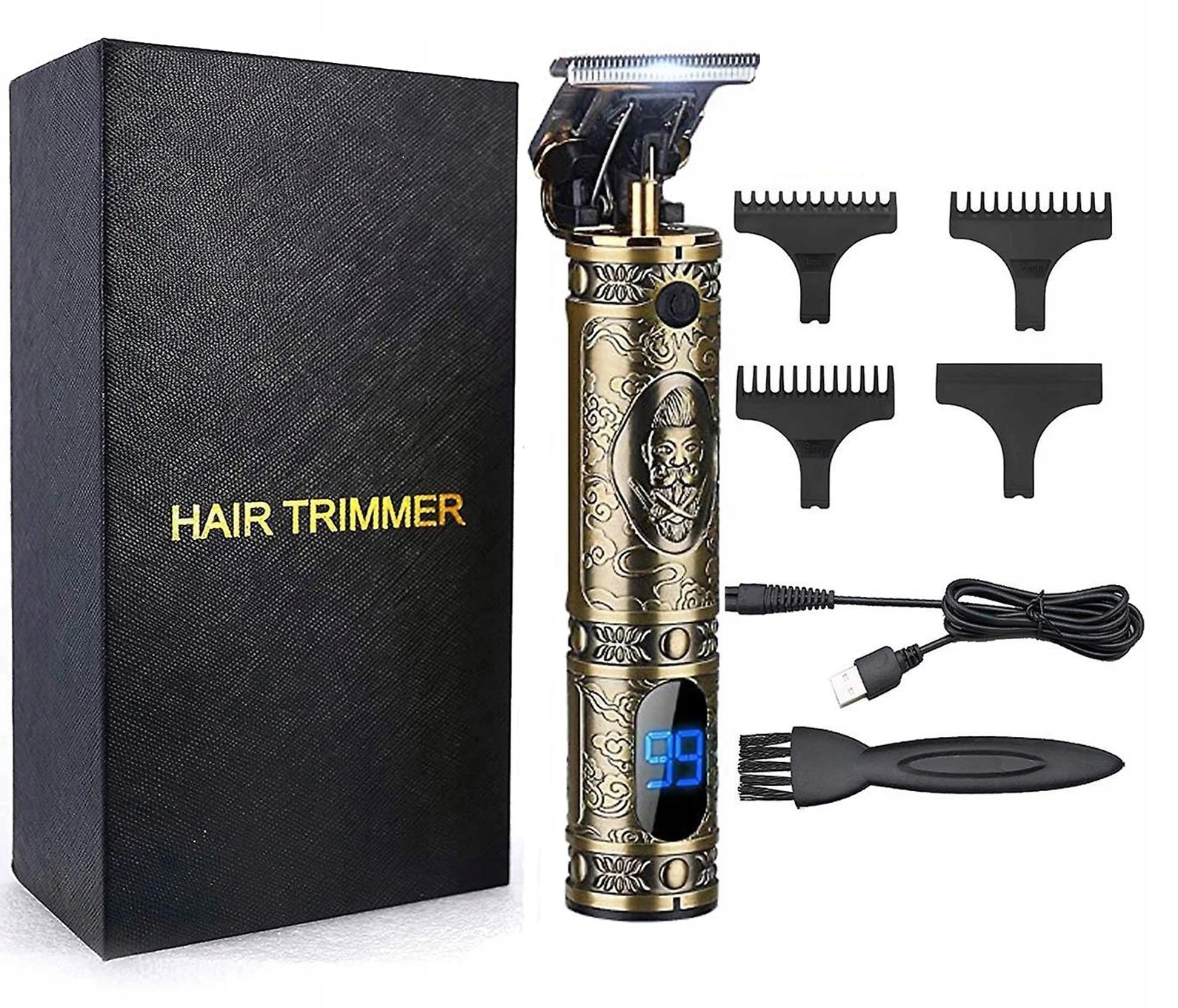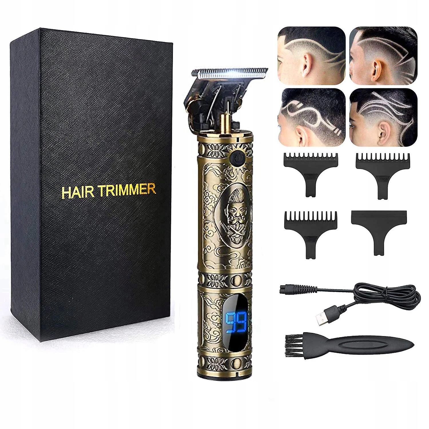 ✔️ Елегантний дизайн із золотими прикрасами: Машинка вирізняється своїм стильним зовнішнім виглядом із красивими золотими деталями, що робить її не лише функціональним інструментом, а й прикрасою ванної кімнати.