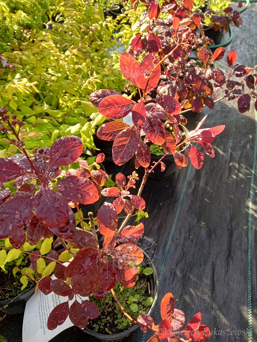 Оксамитовий плащ - Cotinus coggygria (контейнер C2) - фантастичні, пухнасті головки плодів відрізняють подільський плащ від рослин, висаджених на присадибних ділянках чи ділянках.