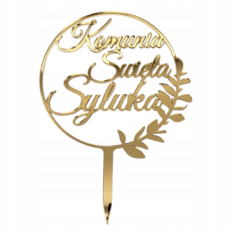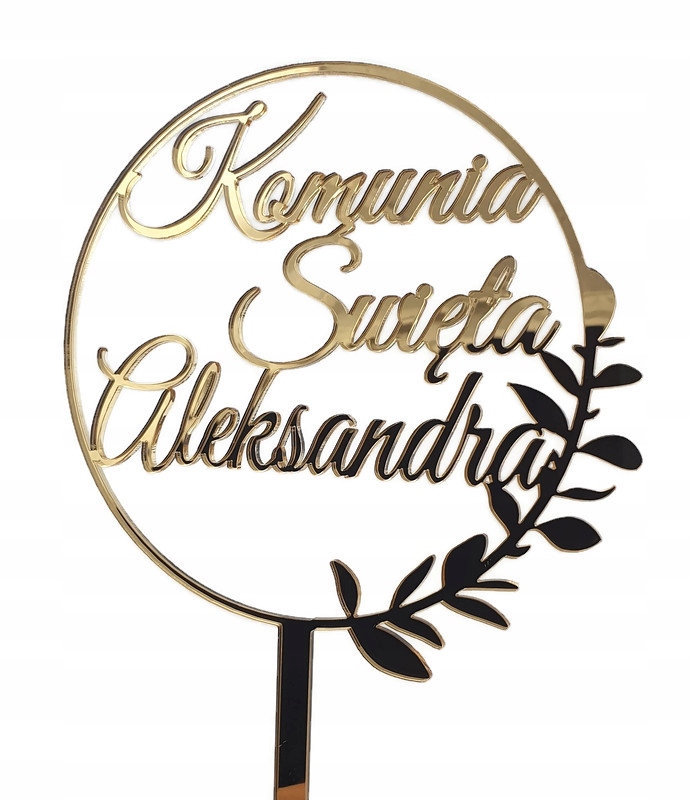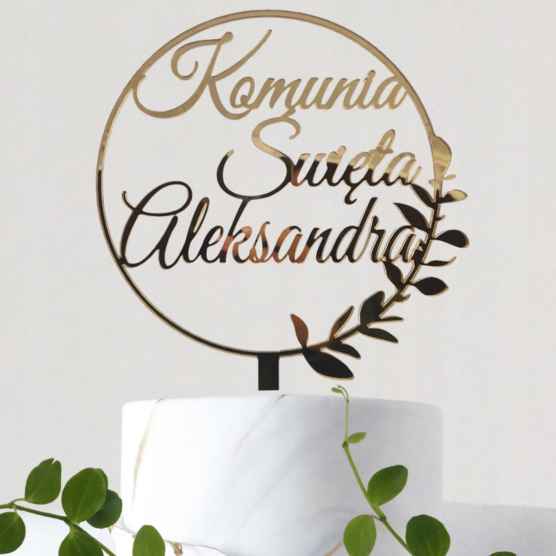 Первопричастя топер з іменем, золото, на торт, Святе Причастя, ІМ'Я, золоте дзеркало