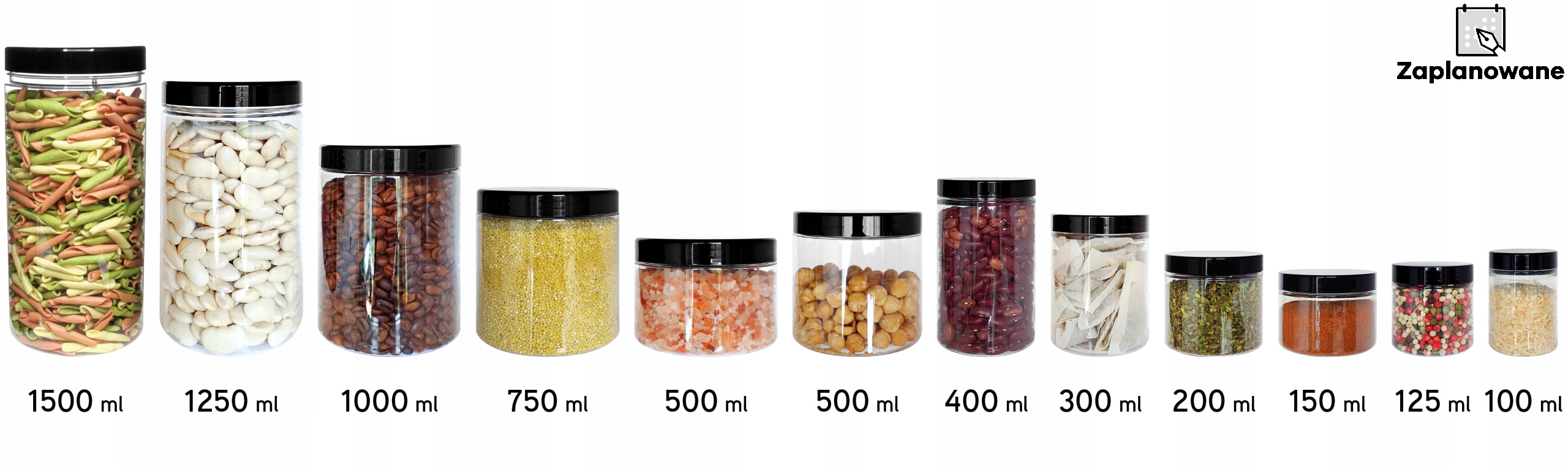 На фото нижче показано всі доступні контейнери в цій серії, щоб вам було легше порівнювати їхні розміри відносно кожного інше.