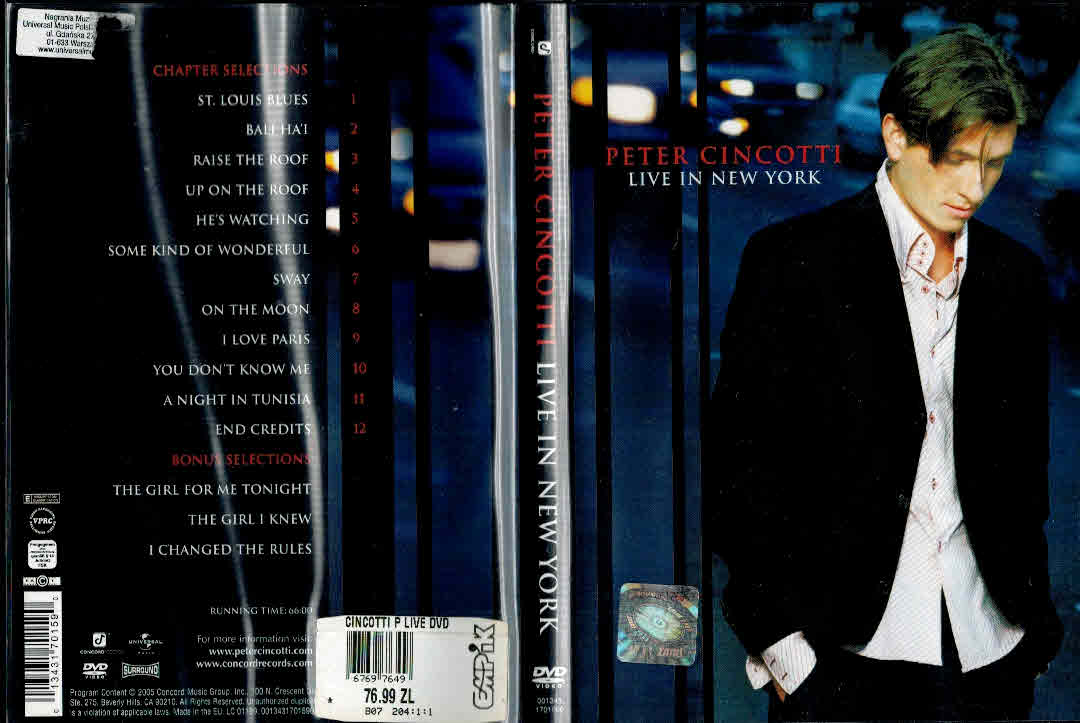 Пітер Чінкотті живе в Нью-Йорку, DVD-концерт