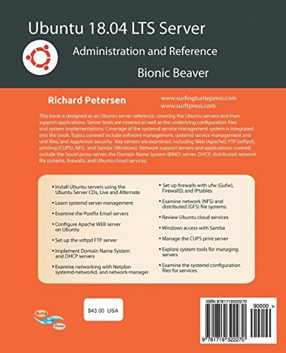 Ця книга розроблена як адміністрування сервера Ubuntu 18.04 LTS, що охоплює сервери Ubuntu та їх додатки для підтримки. Інструменти сервера охоплюються, а також базові файли конфігурації та реалізація системи. Акцент робиться на тому, що адміністратори повинні знати, щоб виконати завдання підтримки та управління ключовими серверами. Покриття системи управління послугами SystemD інтегрується в книгу. Теми, що охоплені, включають управління програмним забезпеченням, управління послугами Systemd, конфігурація мережі SystemD-NetworkD та NetPlan Network, Security Apparmor, OpenSsh, сервер Chrona Time та Cloud Cloud Services. Оглядаються ключові сервери, включаючи Web, FTP, друкарні чашки, NFS та акції Windows Samba. Сервери та програми підтримки мережі включають сервер проксі -сервера кальмарів, сервер доменної системи (BIND), DHCP, розподілені мережеві файлові системи, брандмауери Iptalables та хмарні обчислення.