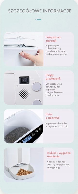 Автоматична годівниця для сухої їжі - це електронний пристрій, призначений для годування тварин у звичайний час. 4 Для підтримки регулярного розподілу харчування