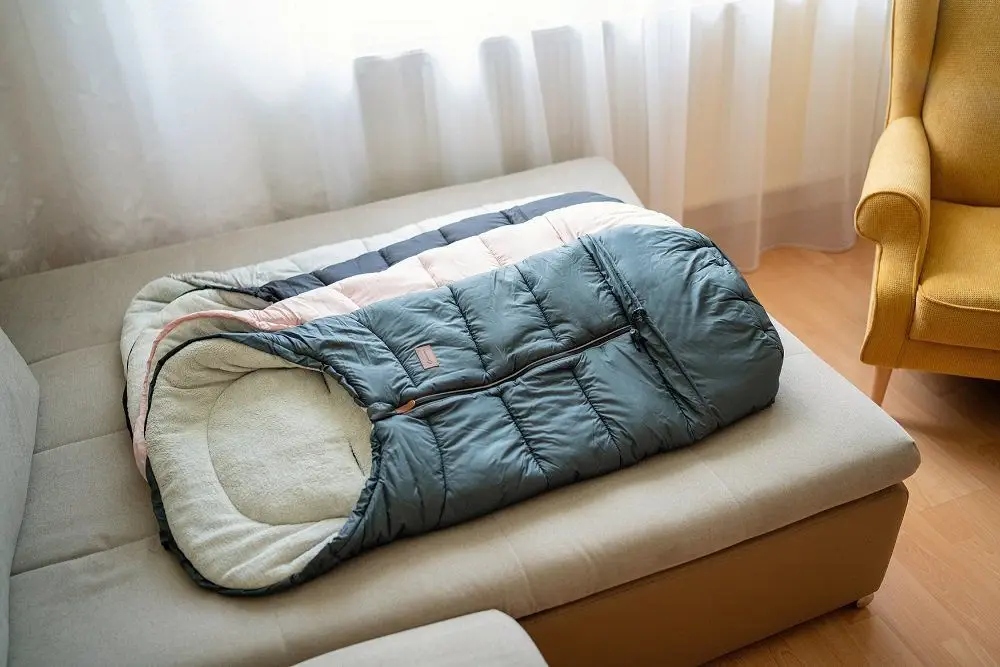 - Спальний мішок елегантних кольорів стане практичним і естетичним елементом у холодні дні.