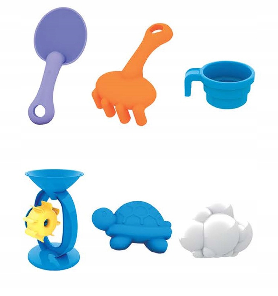 - 6 іграшок у комплекті ( млинок для води, форма, шпатель, граблі, перфорована хмара, чашка)