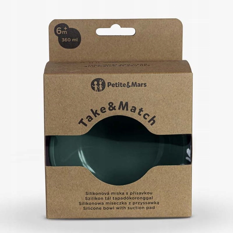 PETITE&MARS Силіконова дитяча миска з зеленою присоскою Take&Match