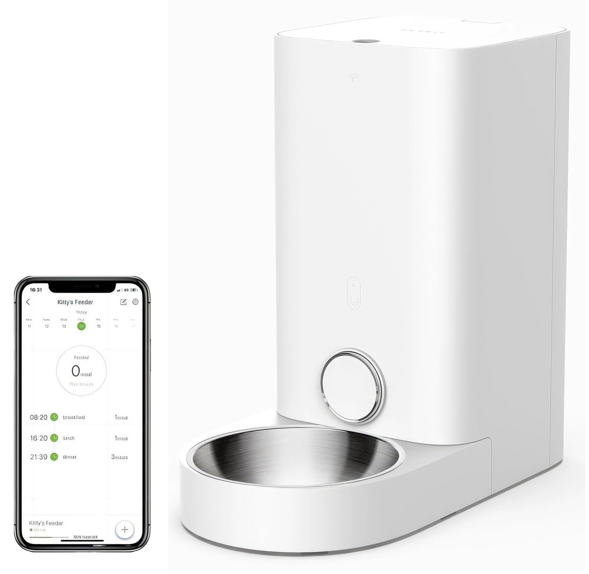 Диспенсер має автоматичну систему годування, завдяки якій тварину годують за графіком, який ви можете персоналізувати за допомогою програми. Ви можете вибрати час, коли ваш вихованець отримуватиме їжу, навіть якщо вас немає вдома. В результаті ви можете довше залишатися на роботі або зустрічатися з друзями, не турбуючись, що ваша кішка буде голодною. Крім того, програма надсилає нагадування, коли в контейнері немає їжі, тож ви завжди будете проінформовані вчасно.