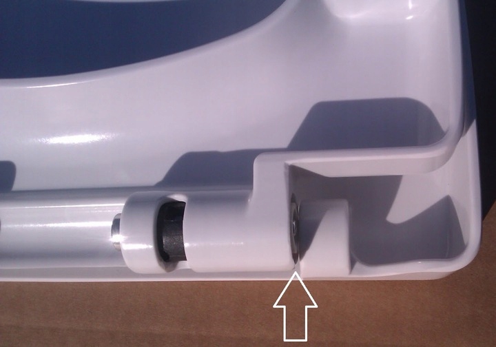 через отвір, який використовується для кріплення сидіння до металевої шпильки, прикрученої до унітазу - малюнок нижче.