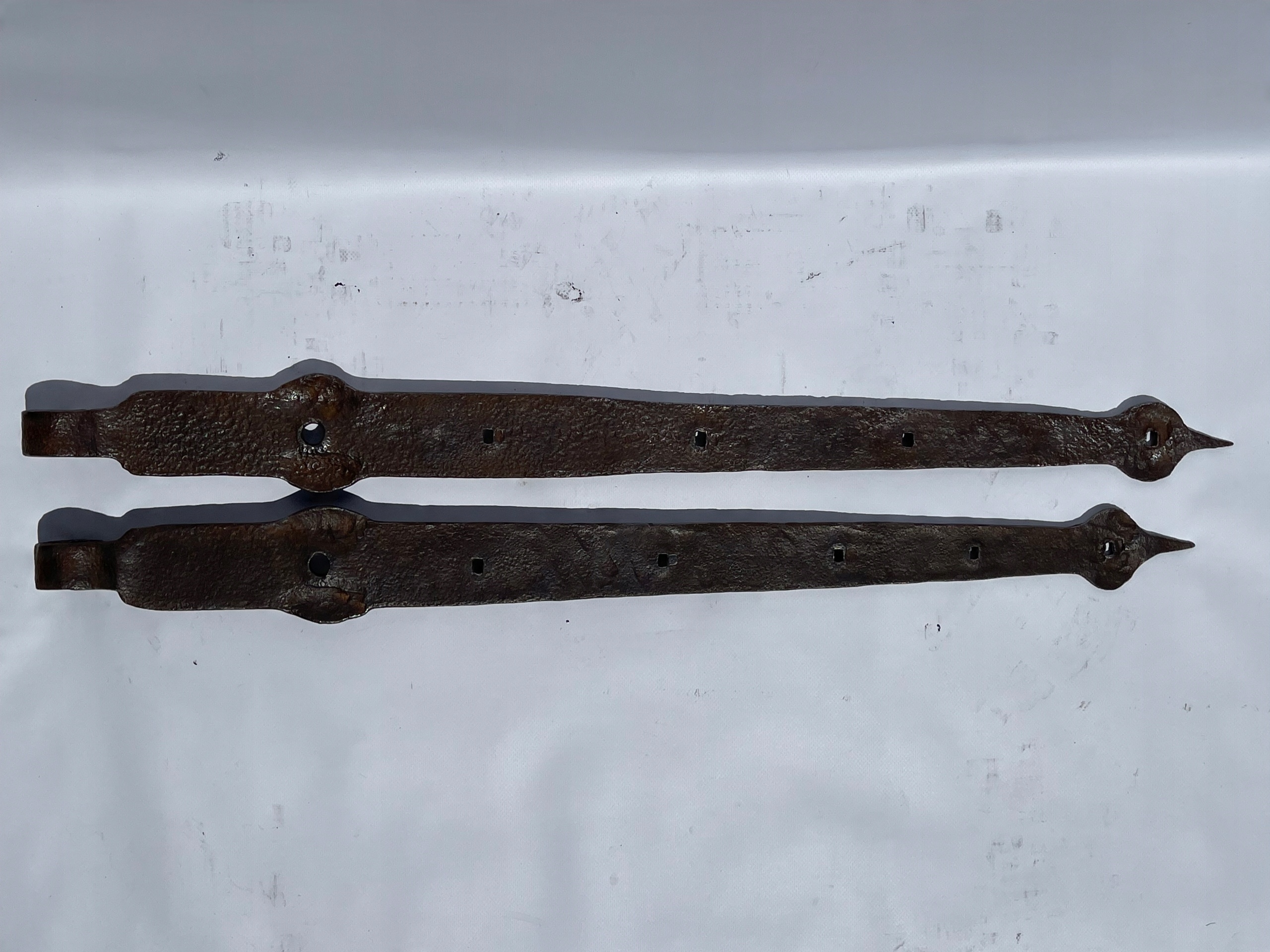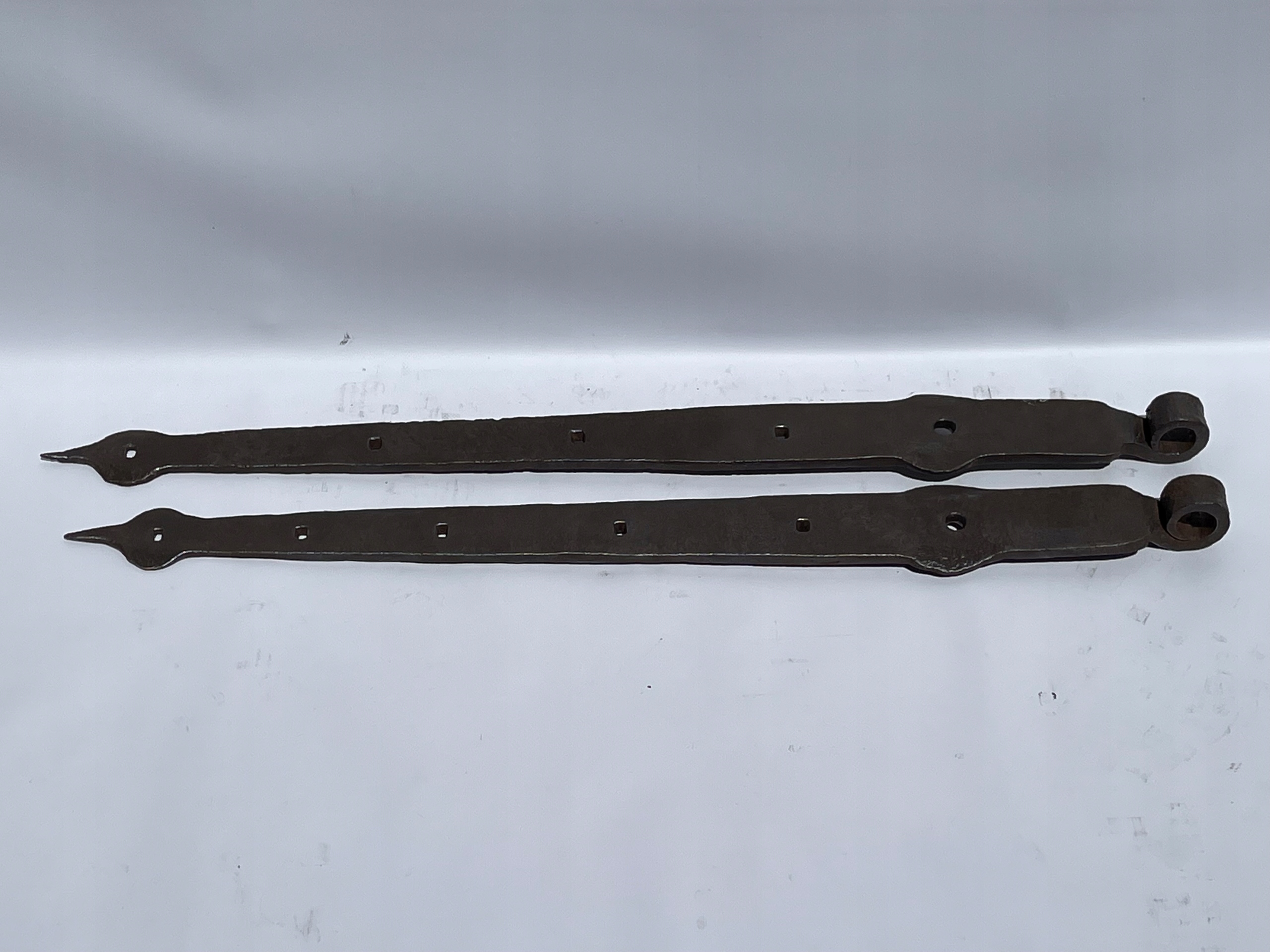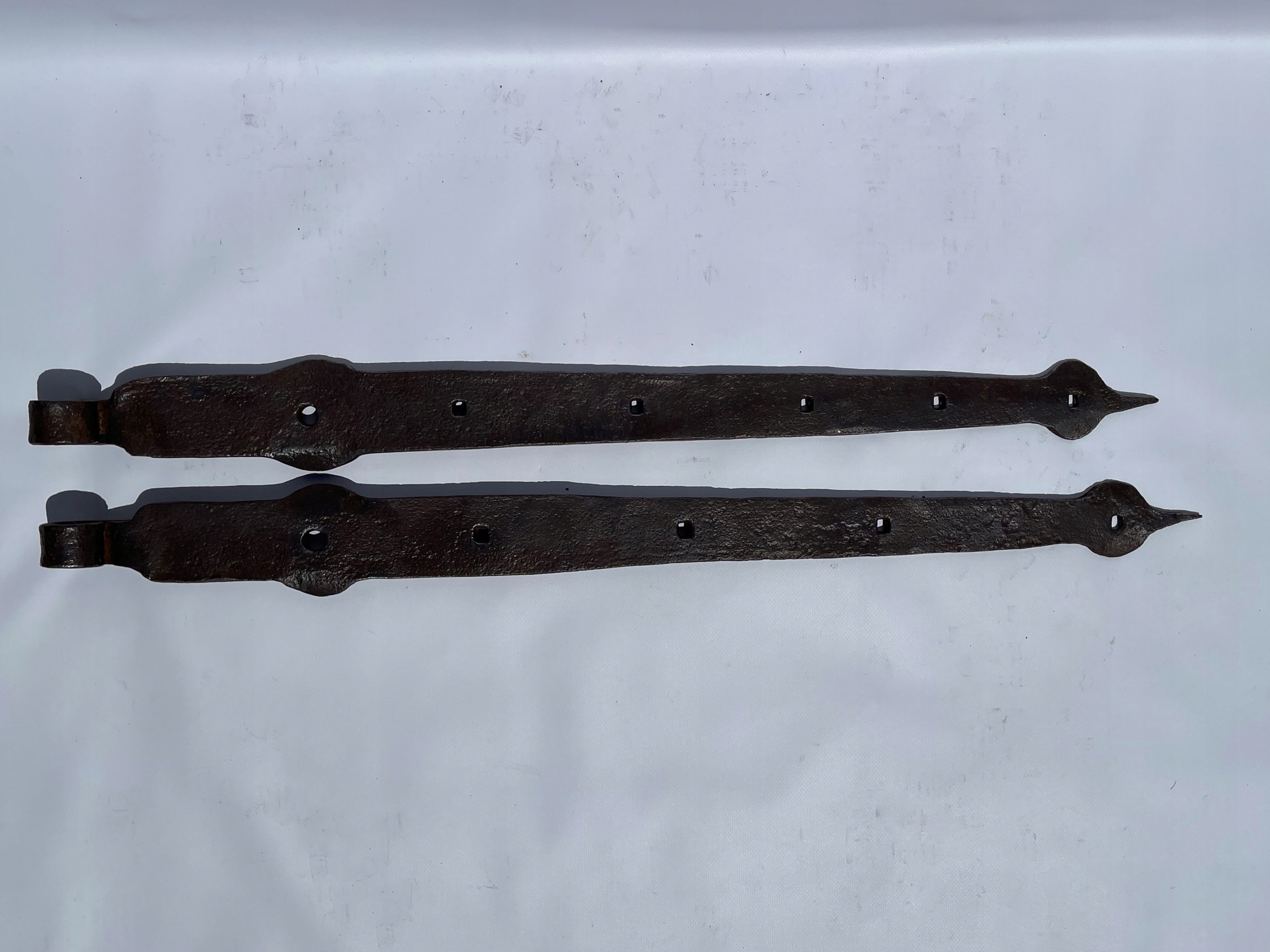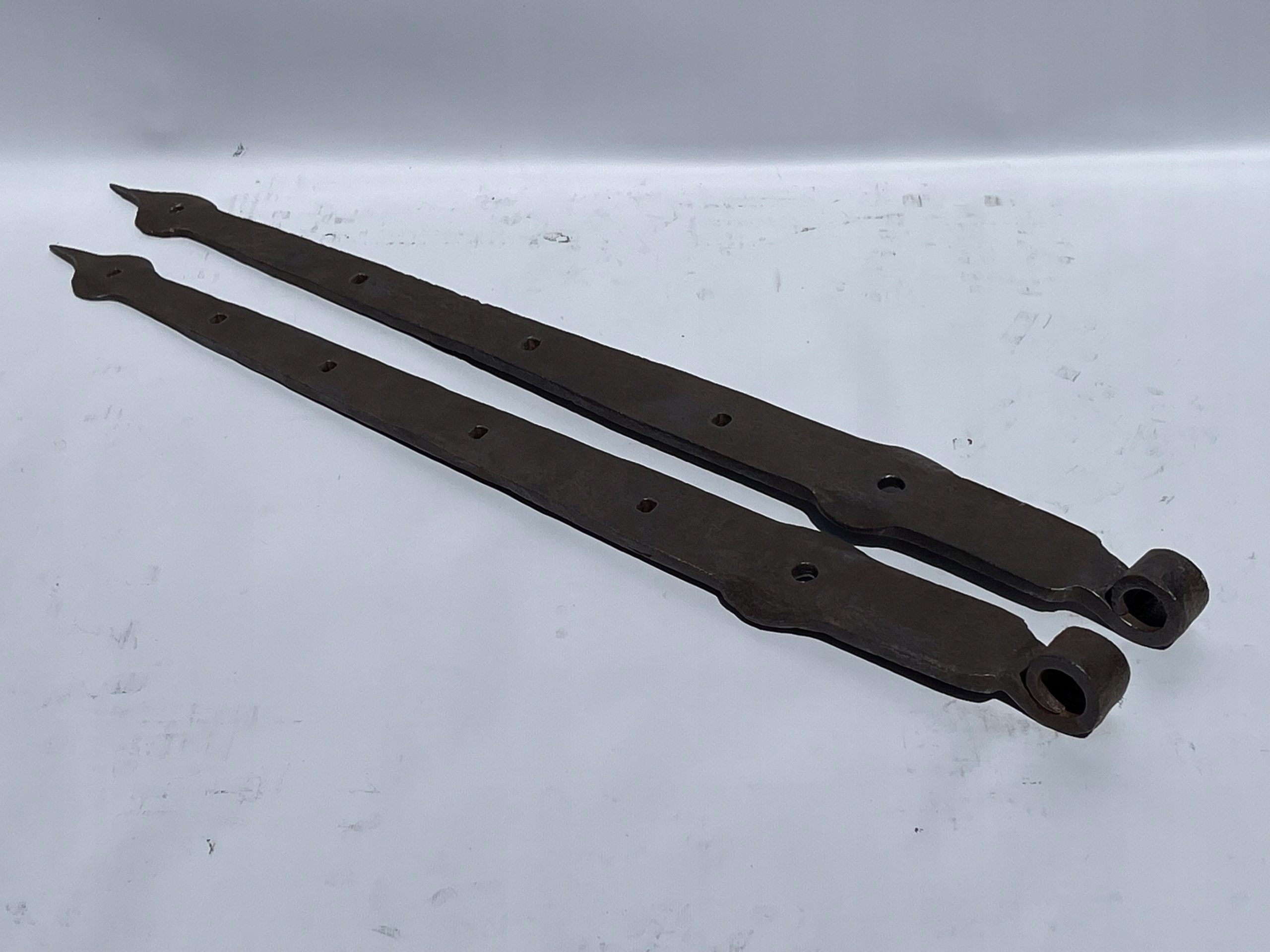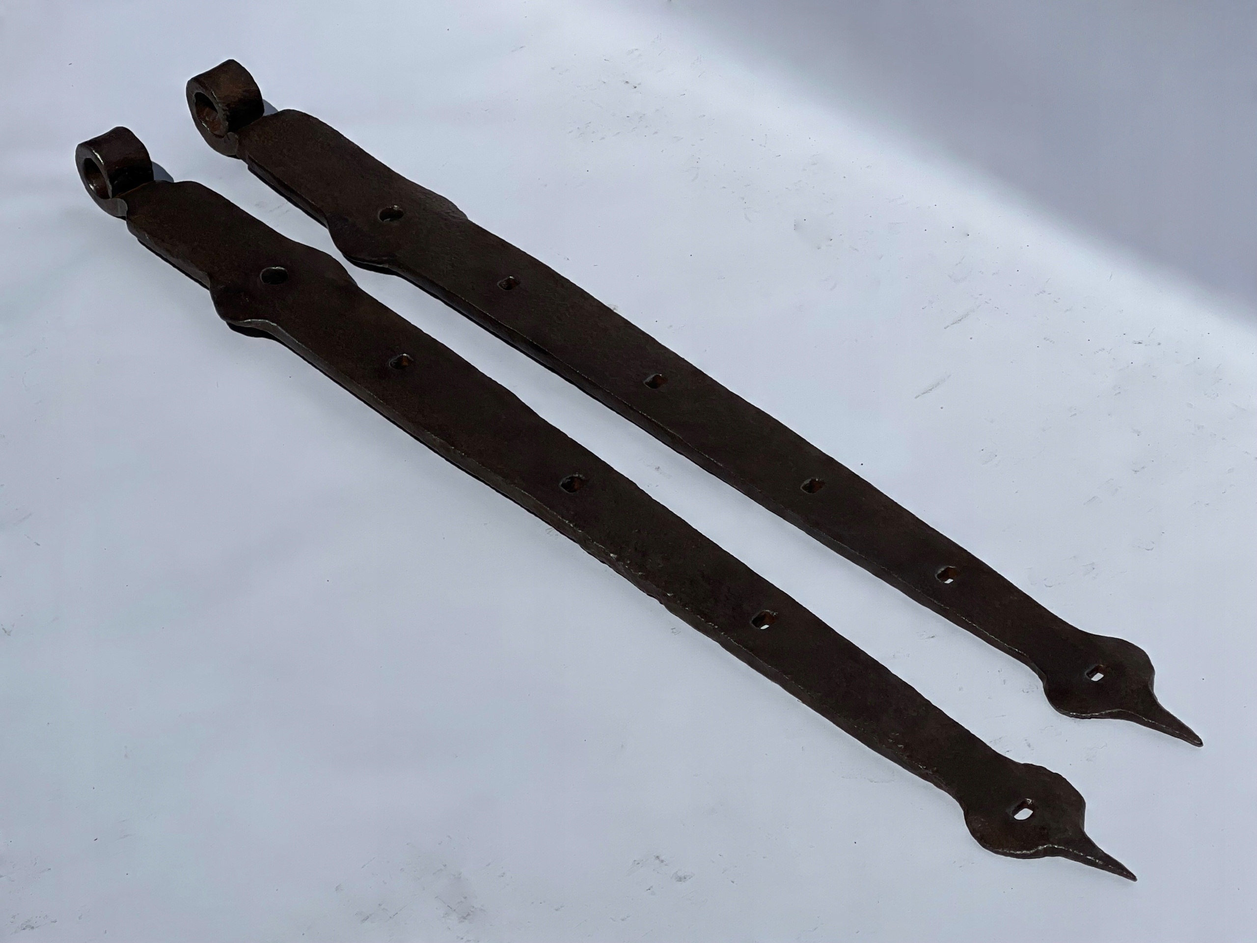 Предметом продажу є комплект петель. Стара ковальська робота. Цікавий візерунок. Дуже гарні манжети на кінцях. Виготовлений з товстого шматка сталі. Багато з тих, що виготовляються сьогодні, збережуться.