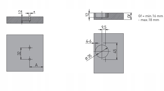 Набір петель від GTV ідеально підходить для кутових шаф із ламаною передньою частиною.