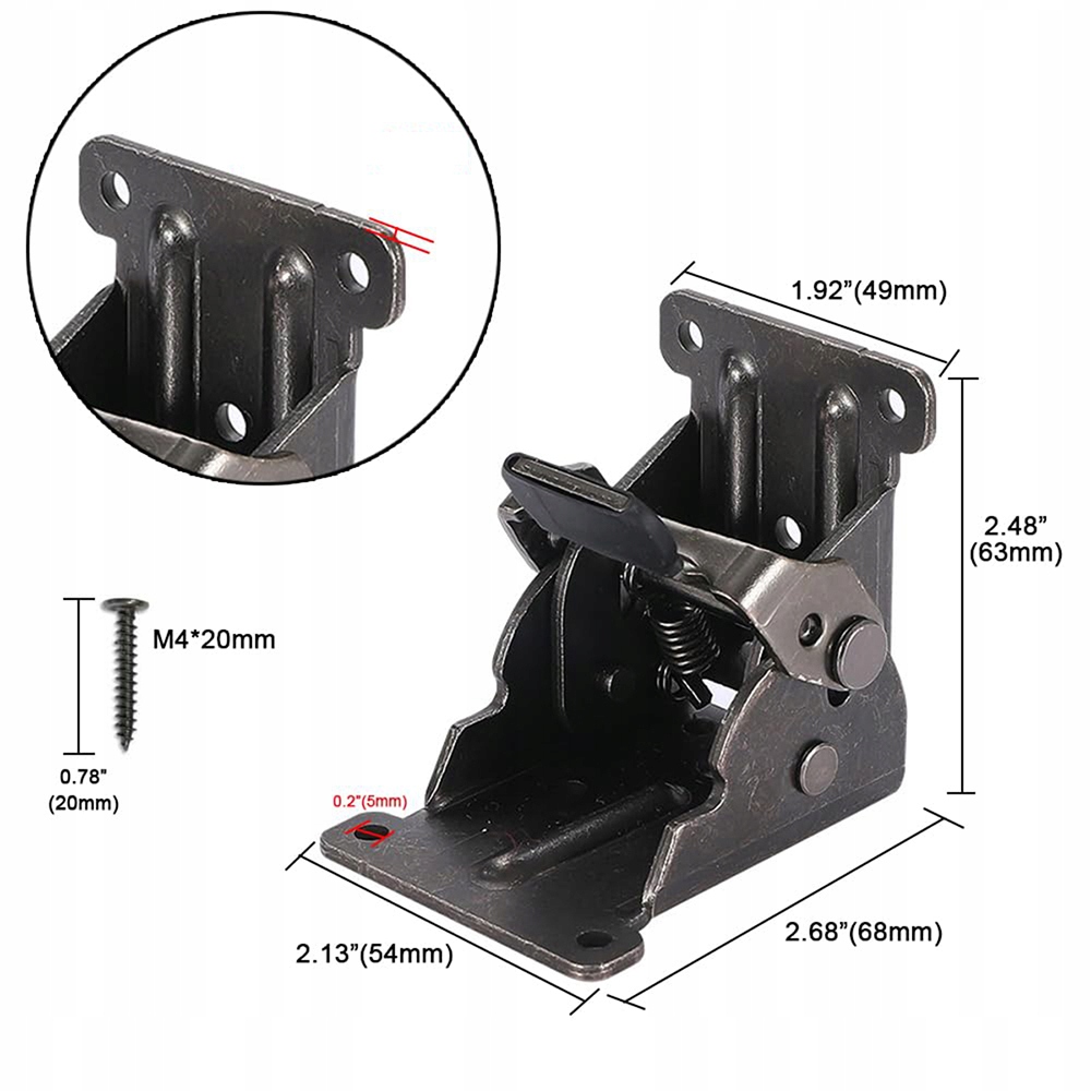 Кожен кронштейн має кілька позиціонуючих отворів для легкого встановлення за допомогою гвинтів і ідеально підходить для складних меблів, таких як столи, ліжка та табурети, допомагаючи вам заощадити місце у вашому домі.